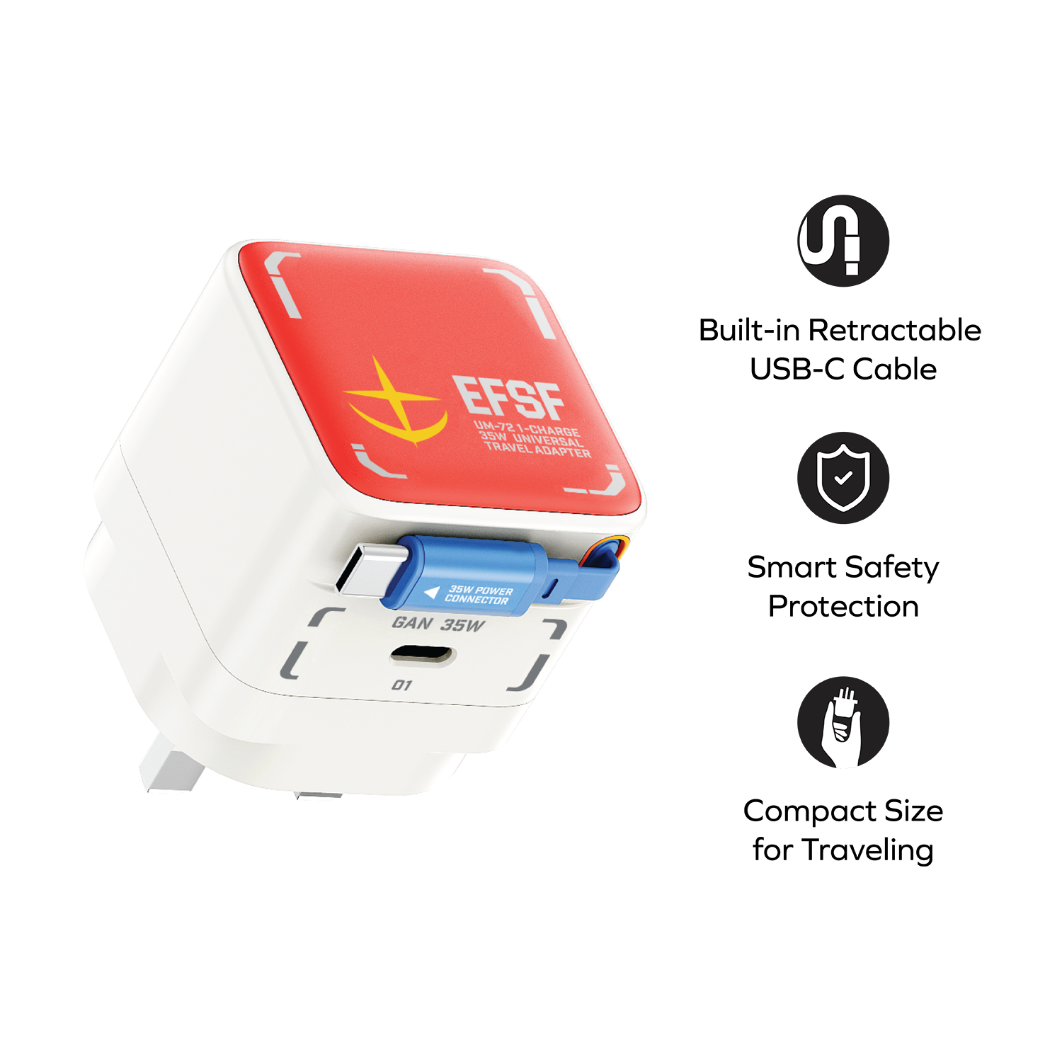 Equipped with cutting-edge Gallium Nitride (GaN) technology. 1-CHARGE+ ensures fast and efficient charging for all your devices. The 35W output ensures you get maximum power in the shortest time. ready to go.