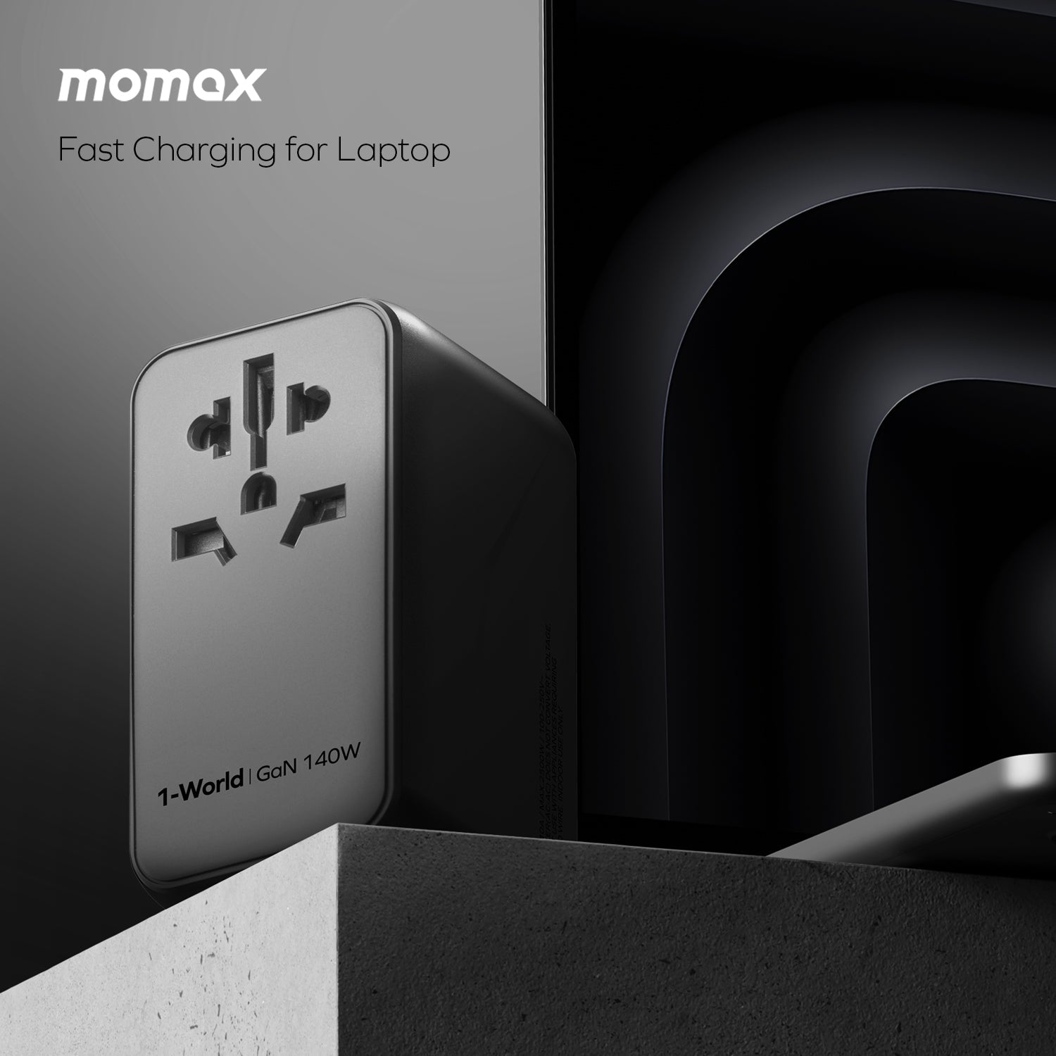Travel light with the 140W power solution from Momax and leave your other charges at home! Using GaN technology. the 1-World 4-Port GaN 140W Travel Charger dynamically optimizes power delivery to provide the fastest and safest charging for your MacBook Pro. phones. laptops. and more.