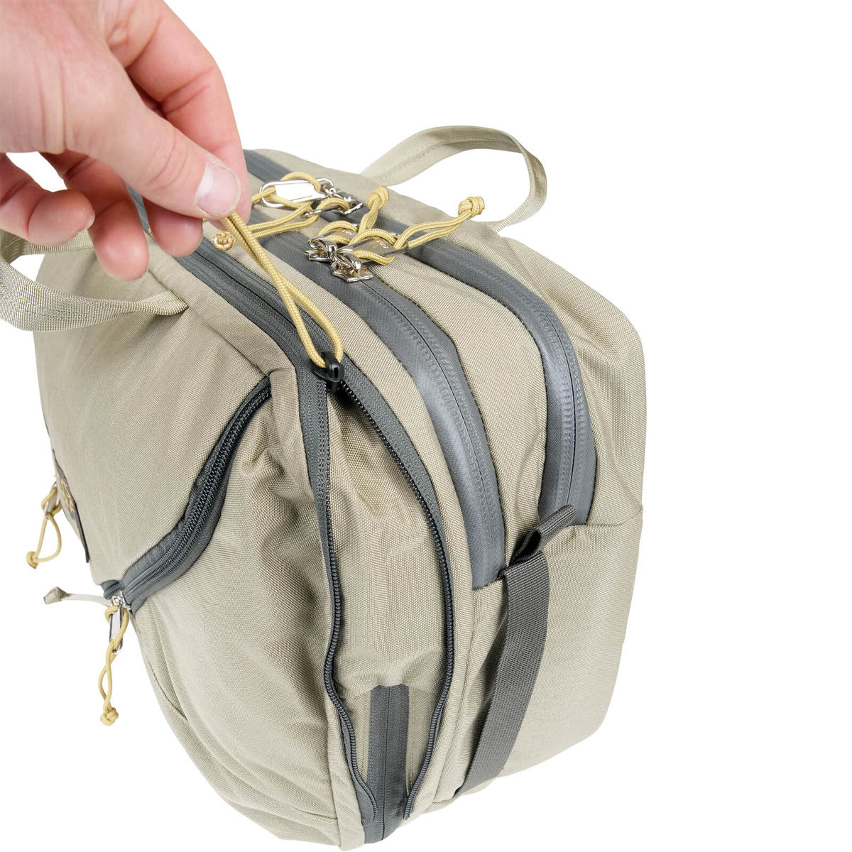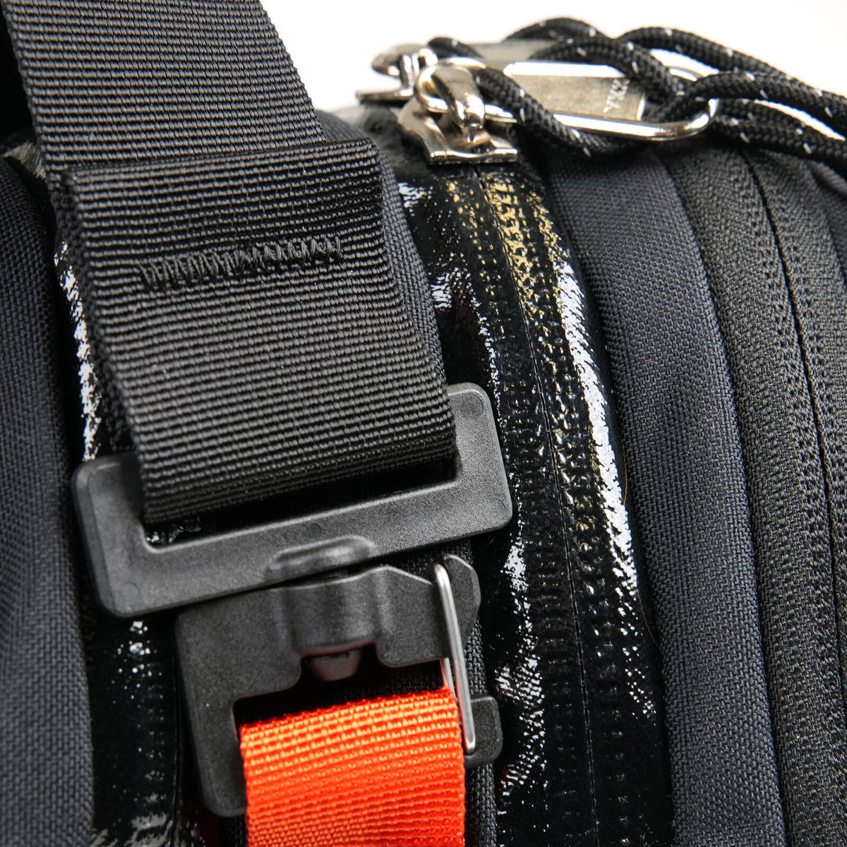 - Additional divider in the main compartment with a zippered pocket and stretch detail pockets