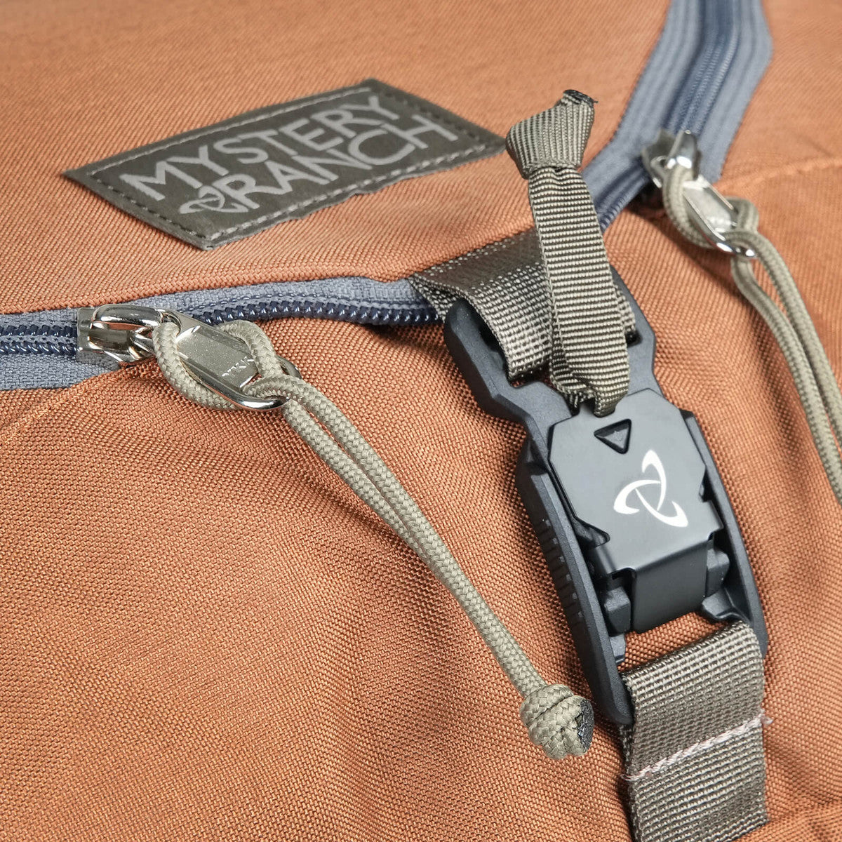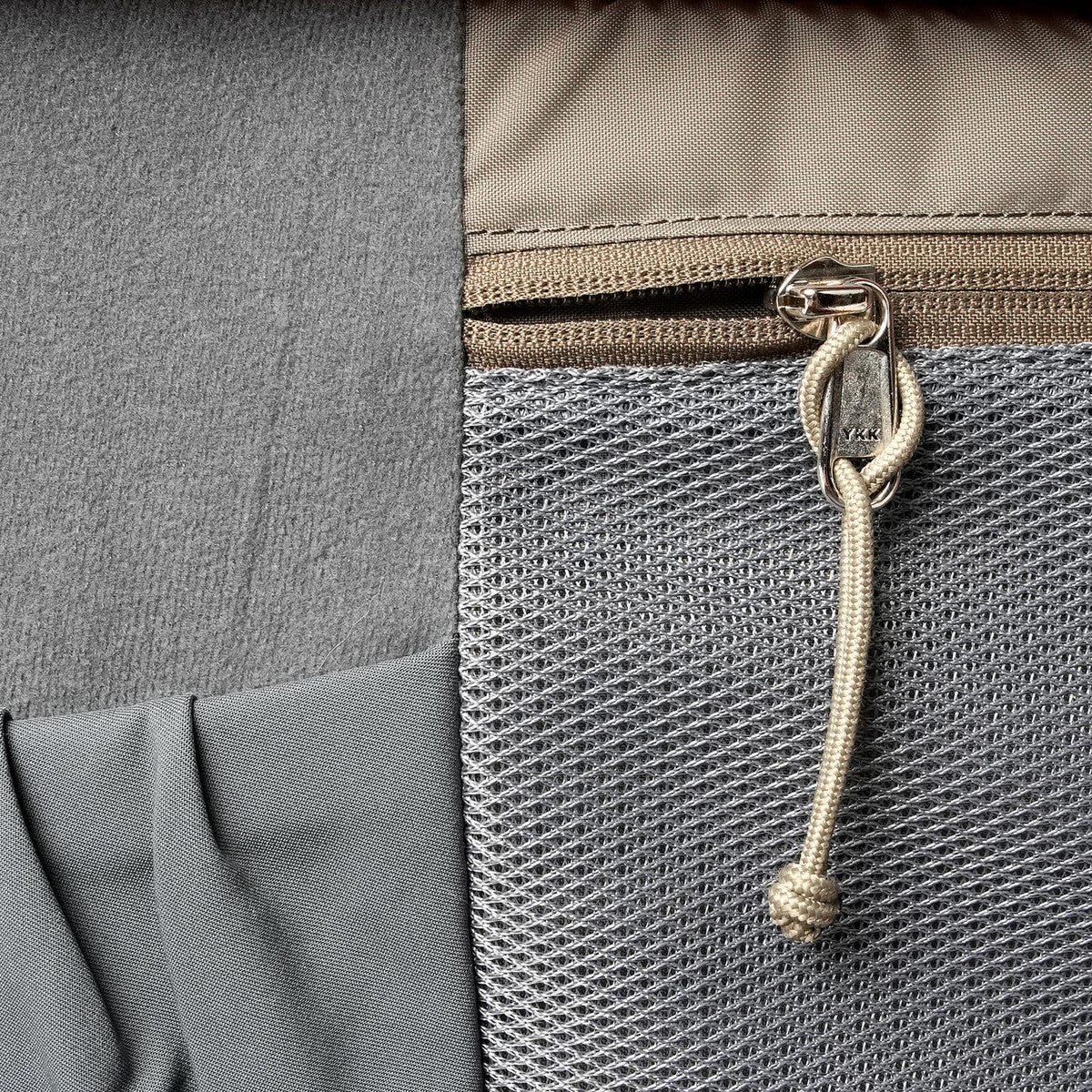 - Front rip-zip pocket with magnet buckle. mesh zippered pocket. and stretch fabric detail pockets