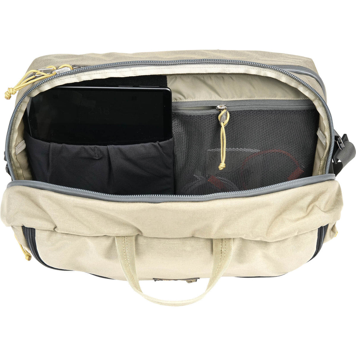 - Clam shell opening to the main compartment for easy access and an elastic retention band