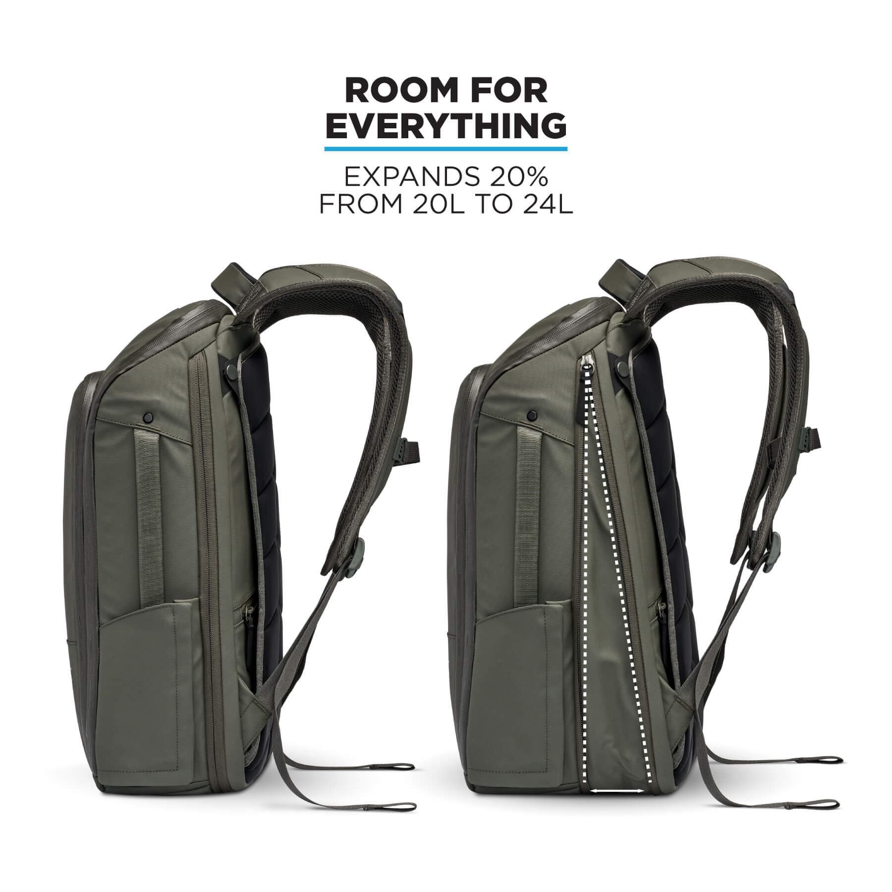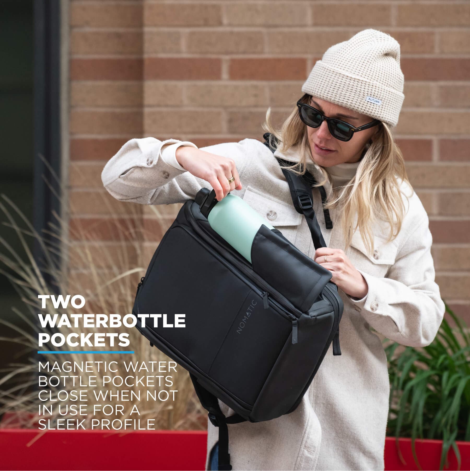 Need more room? No problem. With a 20% expansion capacity. it accommodates your extra gear seamlessly. Transition effortlessly from backpack to briefcase-carry with the patented strap system. perfect for switching up your professional look. From its full perimeter zipper to magnetic water bottle pockets. RFID-safe storage and hidden compartments. this backpack boasts over 20 innovative features. Sleek. minimalist and supremely functional. the Nomatic Backpack empowers your life on the move.