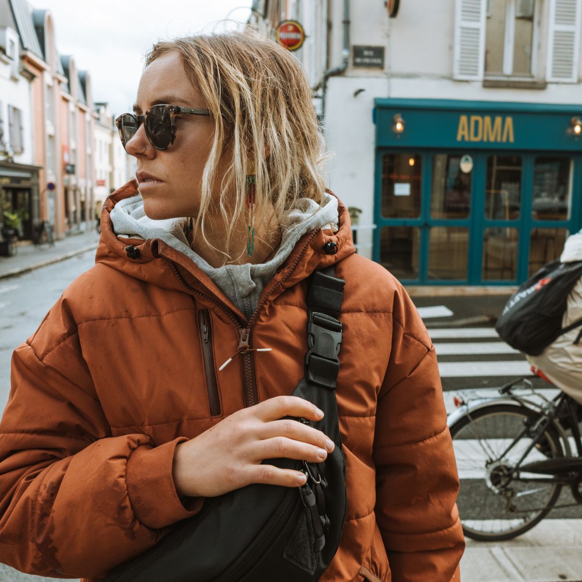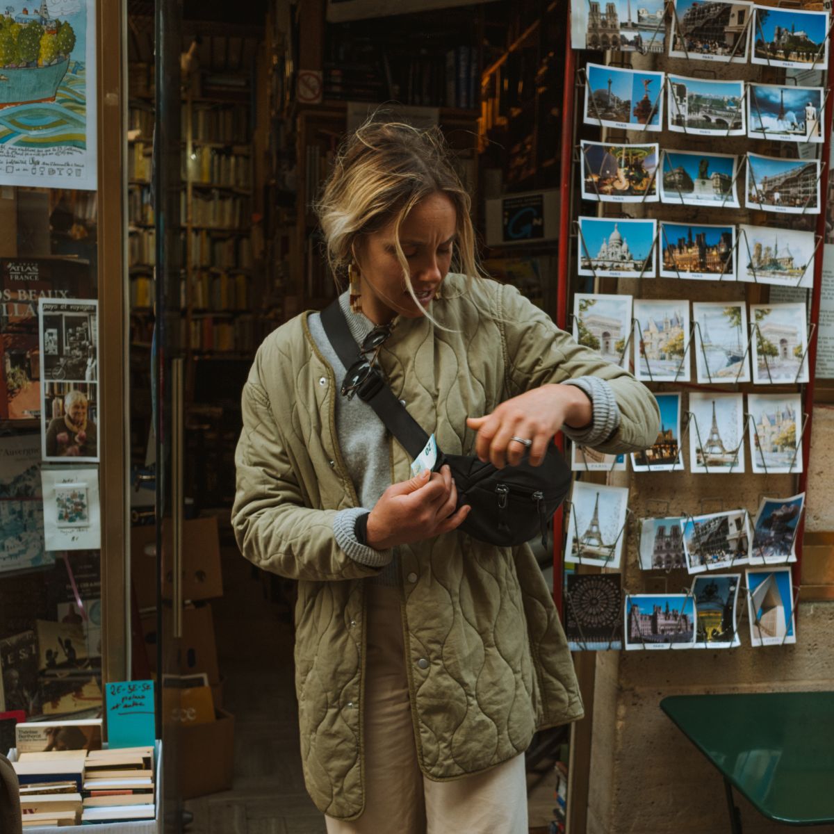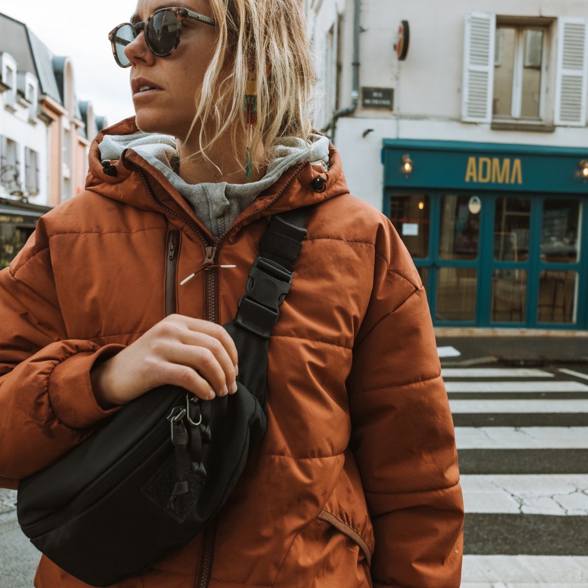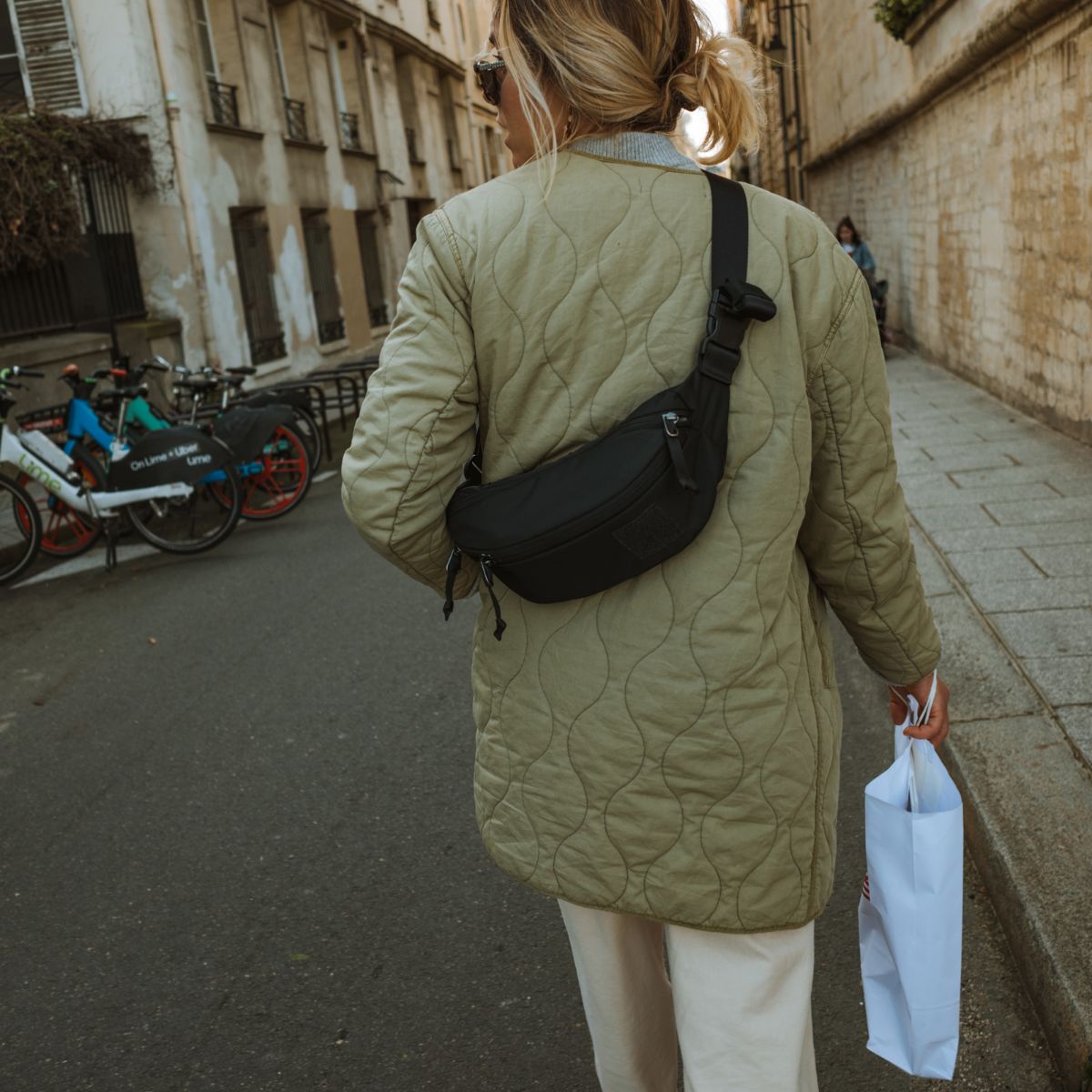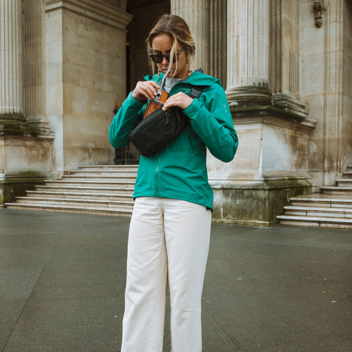 We updated the buckle and strap configuration to improve its function and maintain its streamlined aesthetics. The buckle is now on the sling’s side and includes a sleek strap keeper.