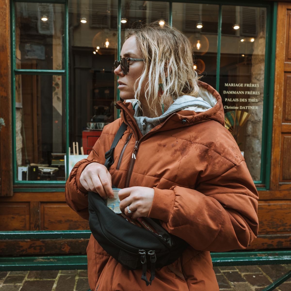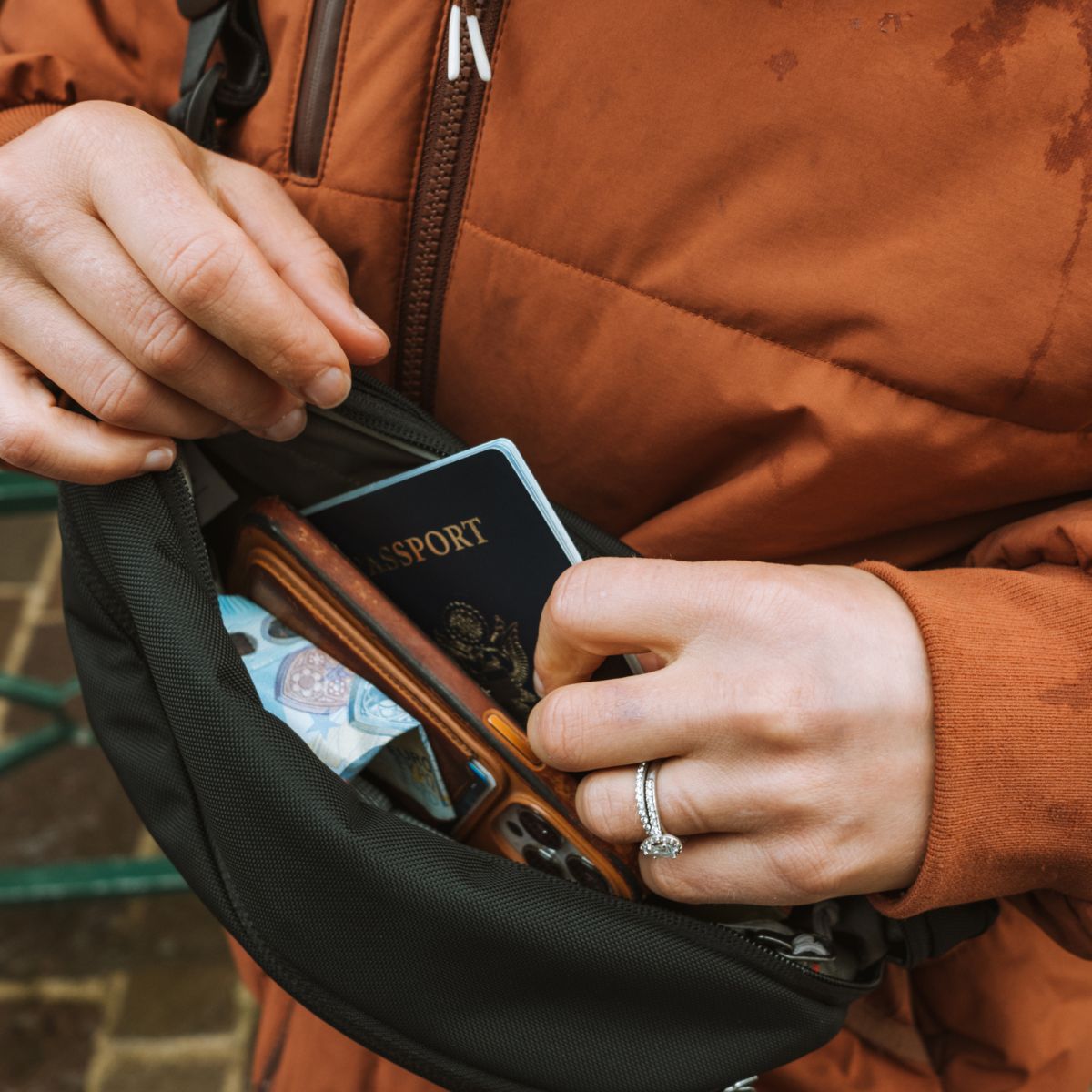 Signature EVERGOODS drop-in pockets divide and house EDC. Internal security pocket keeps valuables hidden and close to your body.