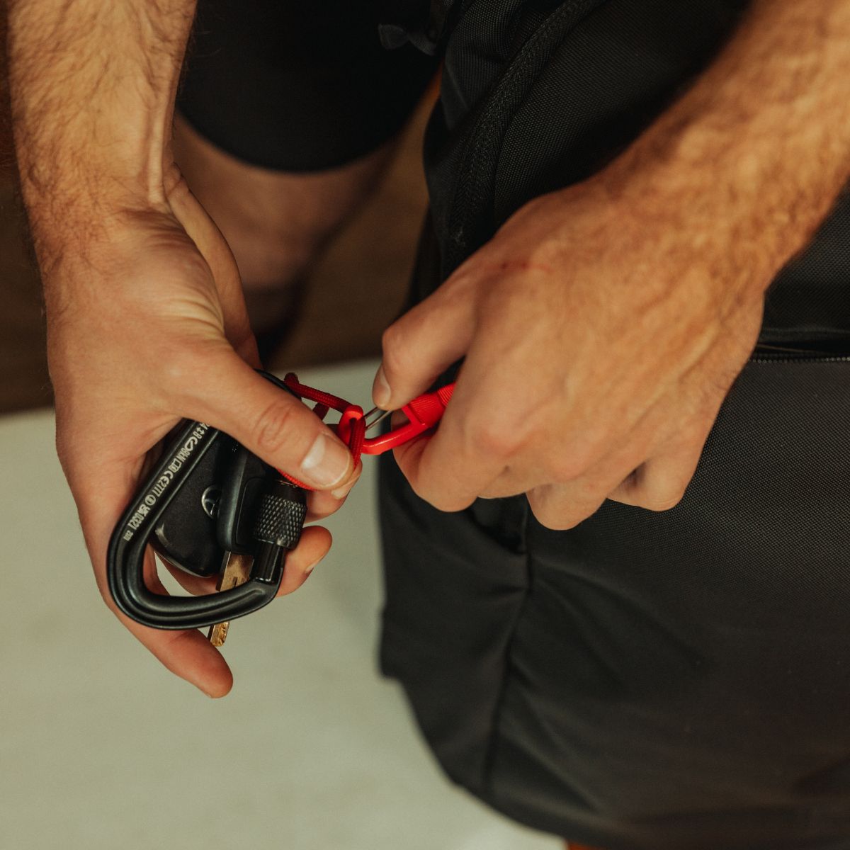 - Top carry handle with utility loops outside of handle to temporarily clip/secure smaller items