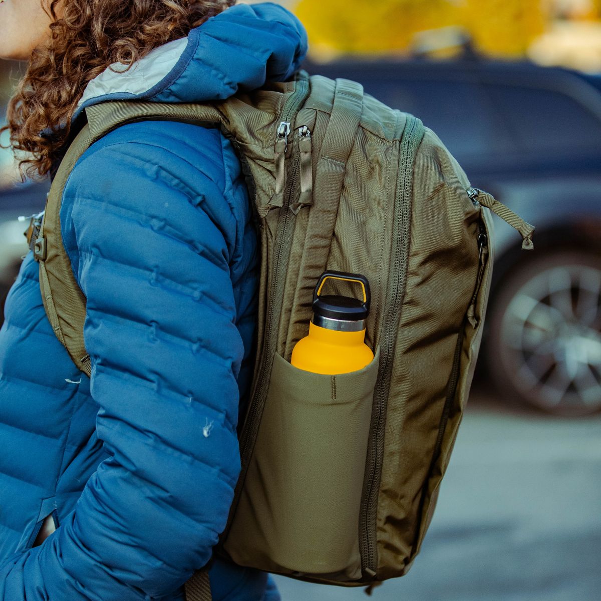 - Stretch woven side pockets (fits slim water bottles easily. 1L Nalgene snugly)