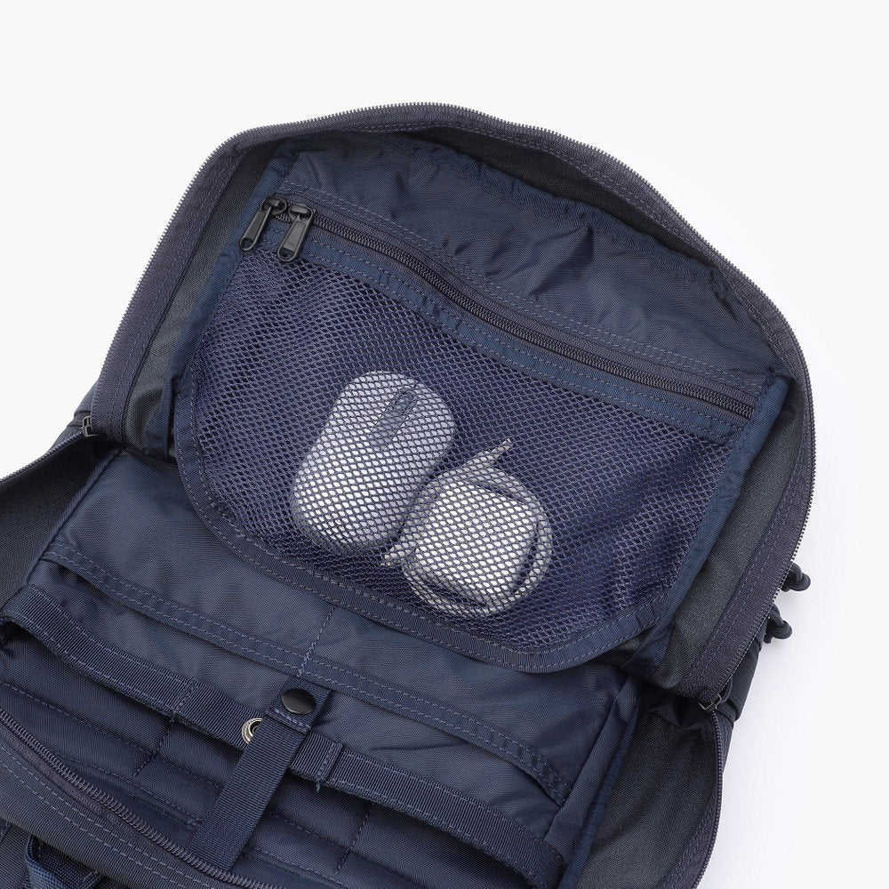 – Two three-dimensional outer pockets are equipped with internal partitions for convenient sorting and storage.
