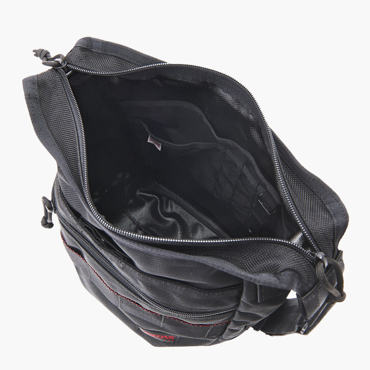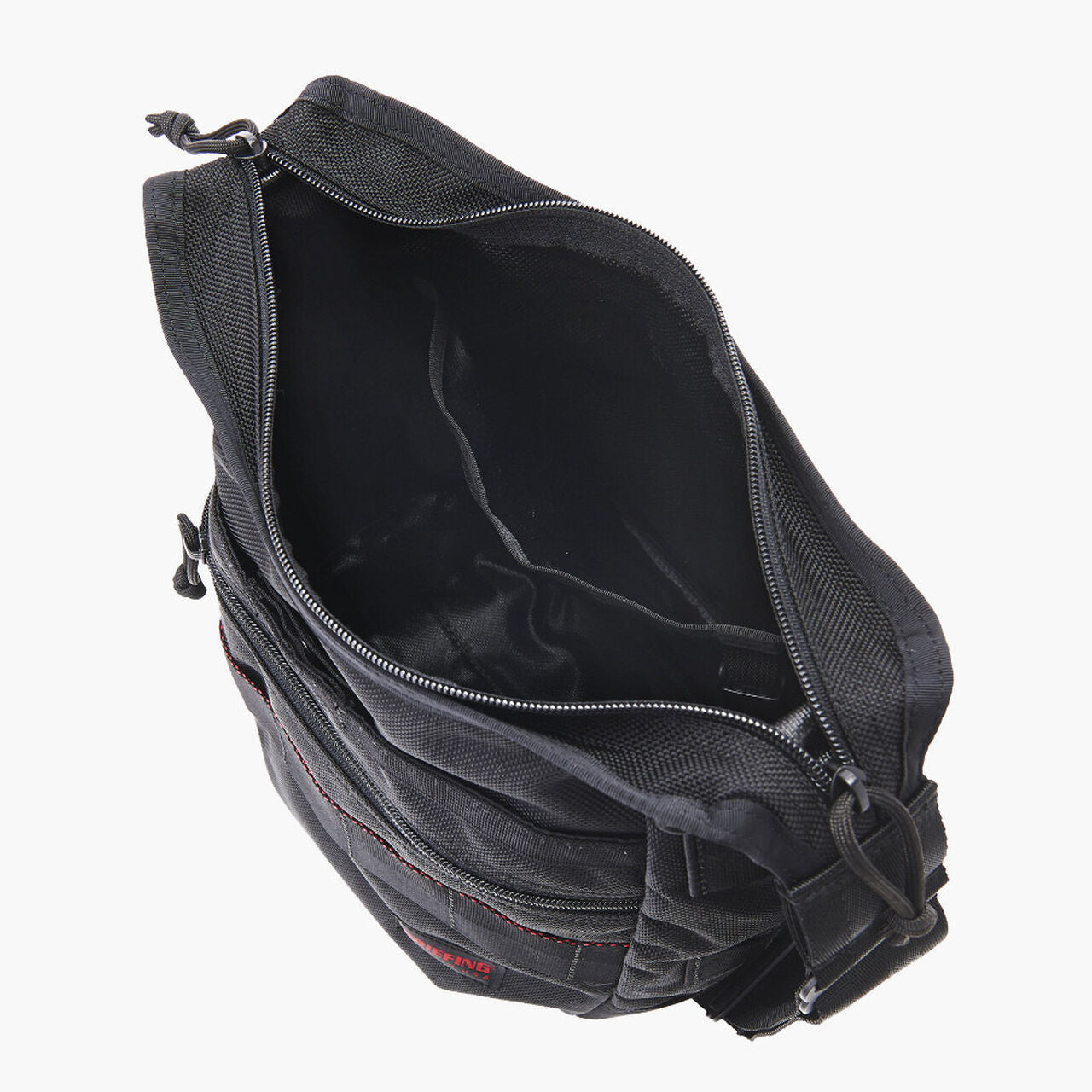 DAY TRIPPER is compact in size.with zippered compartments. a pocket for your phone. and thoughtful interior and exterior organization. Not only that. but the roomy pockets are included in both the interior and exterior. this shuoulder bag will help you get where you need to go. In addition. the rounded design and the flexibility of ballistic nylon allow the bag to hold bottles and other items. and it has more storage capacity than it looks.