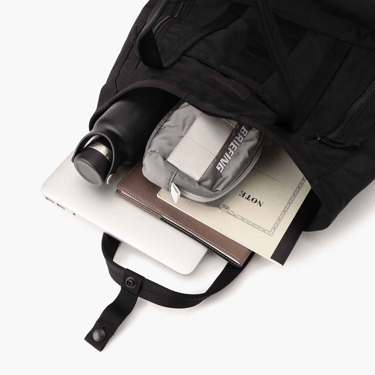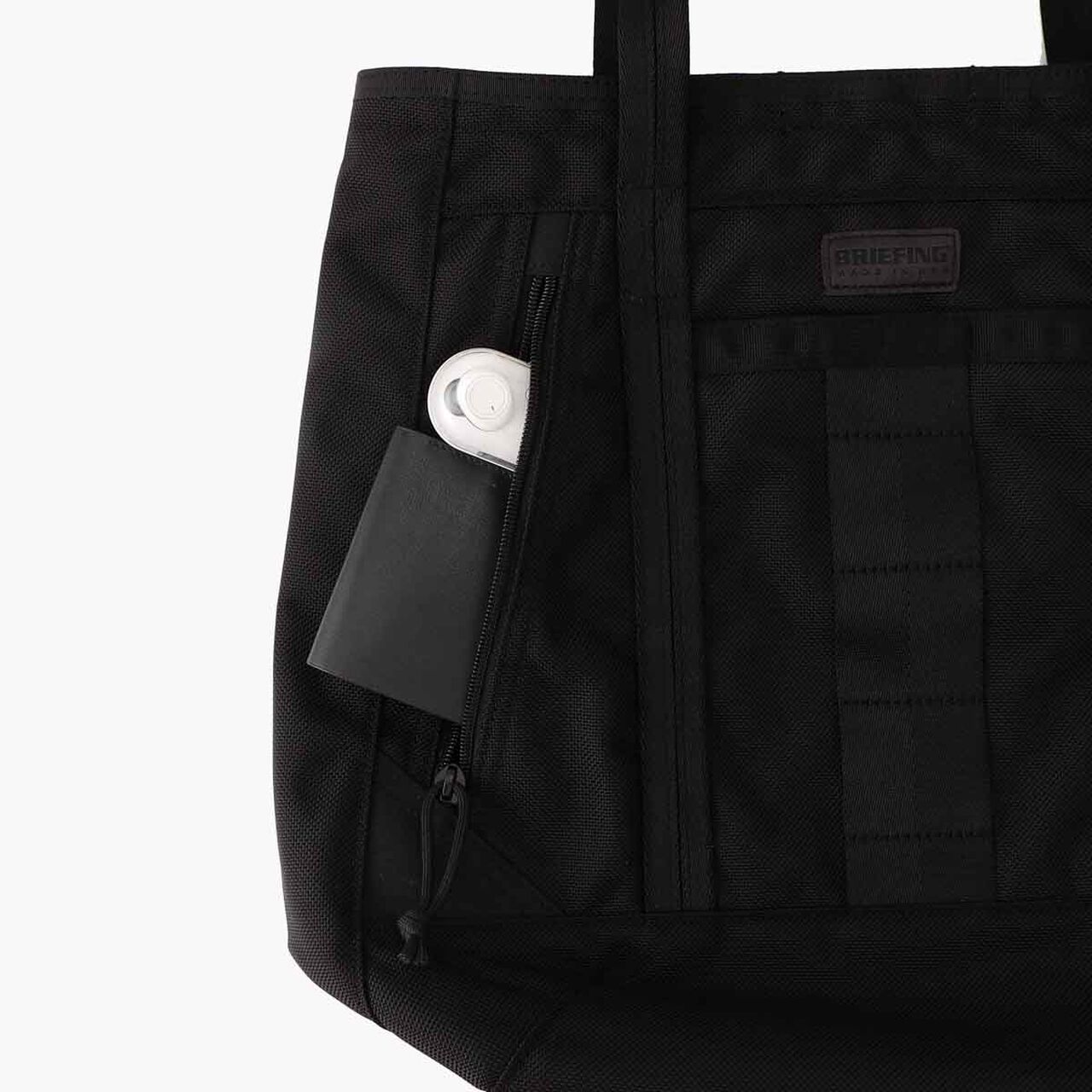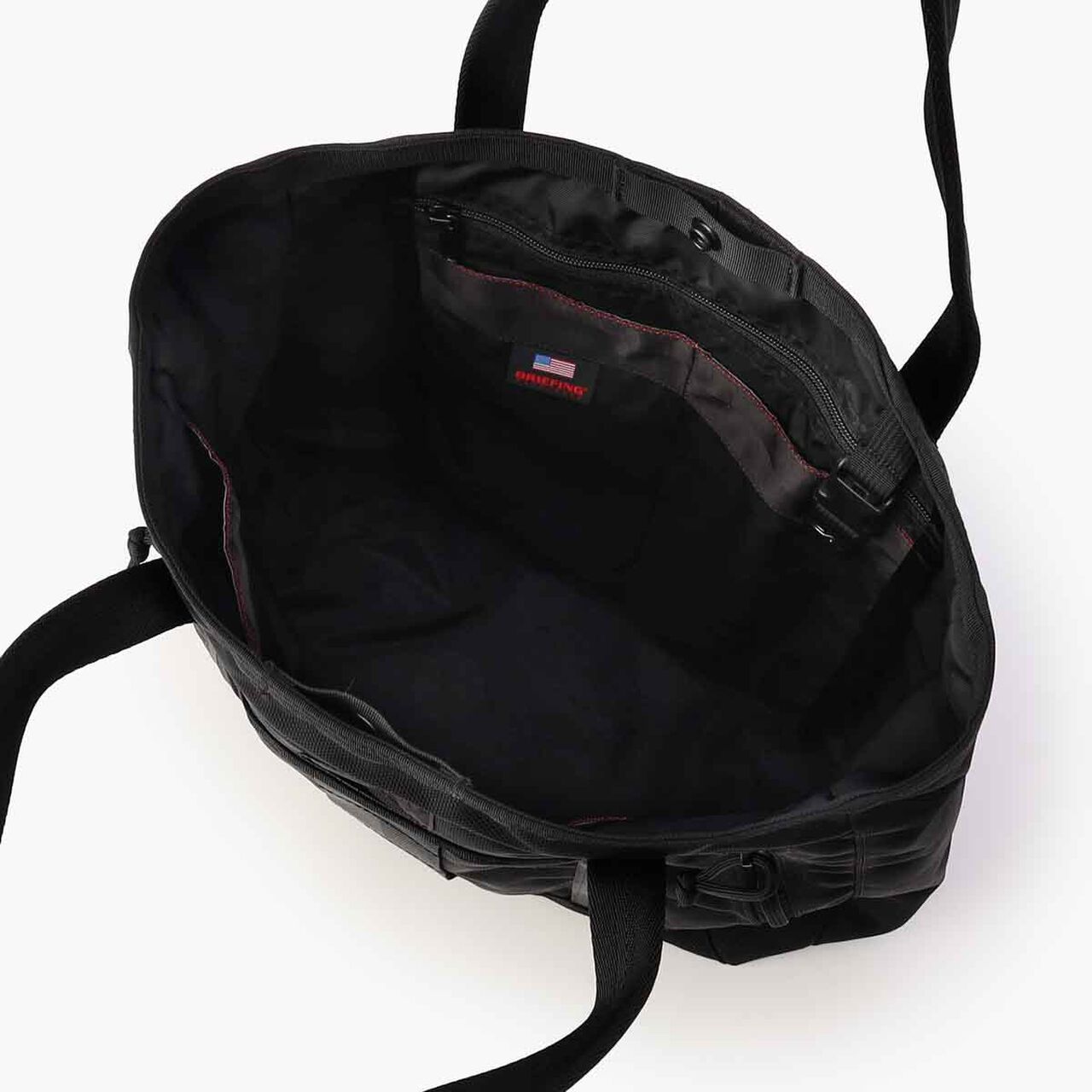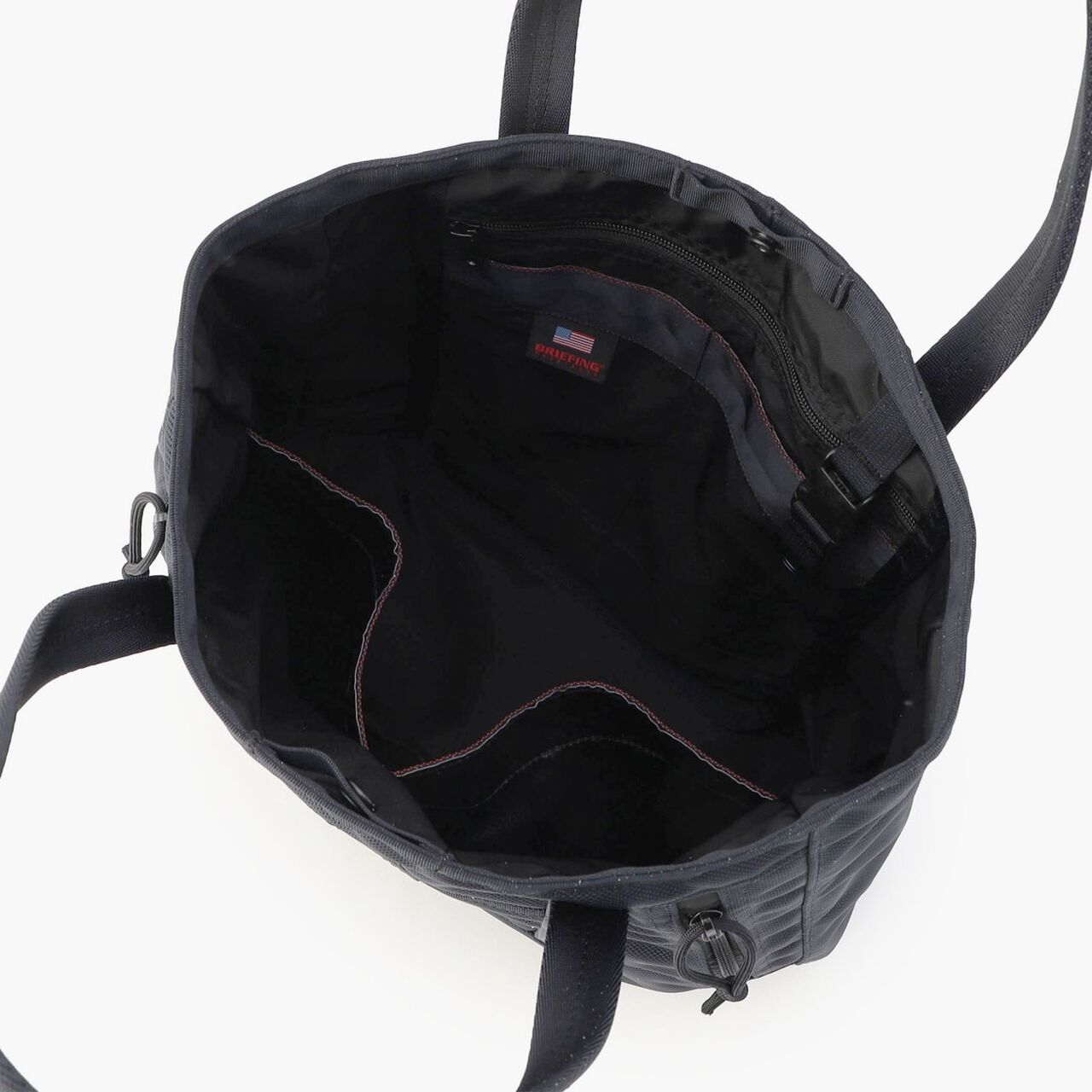 ใƒปWhile maintaining a minimalistic appearance with an overall black design. it incorporates ruggedness characteristic of BRIEFING by placing red lines symbolizing BRIEFING and pull cords inside the bag.