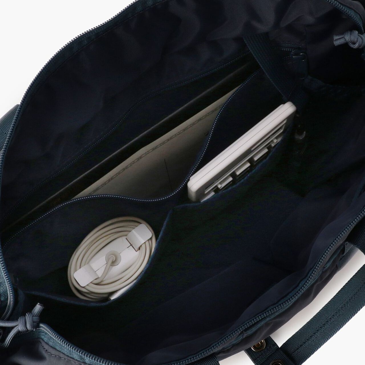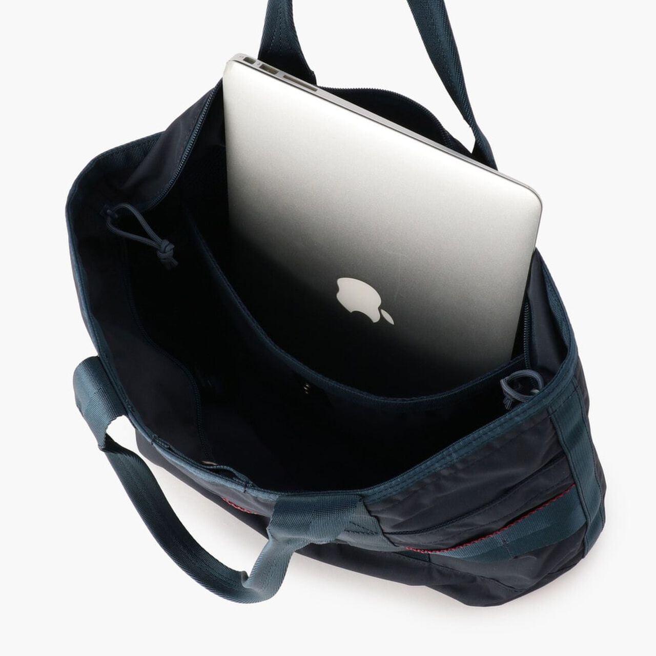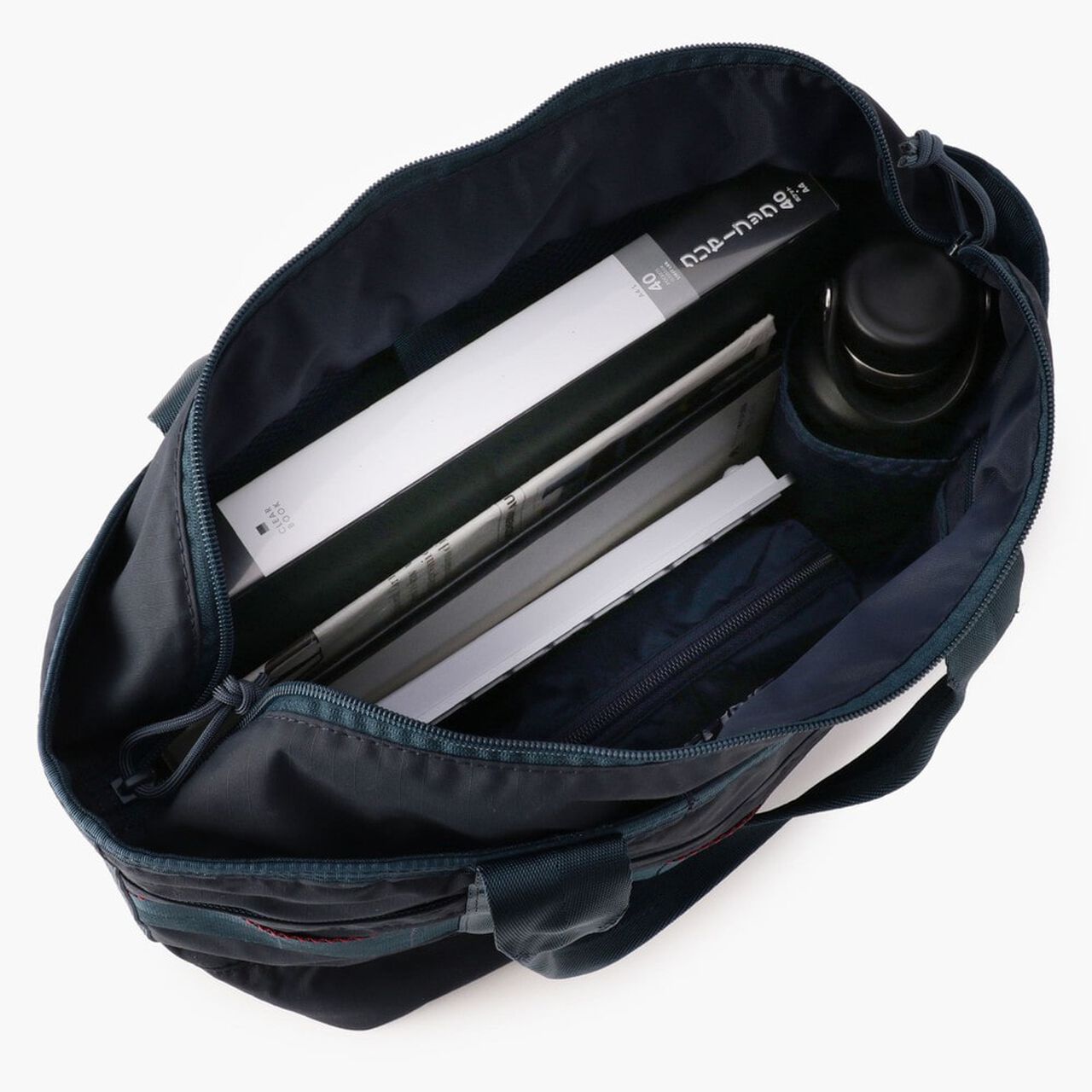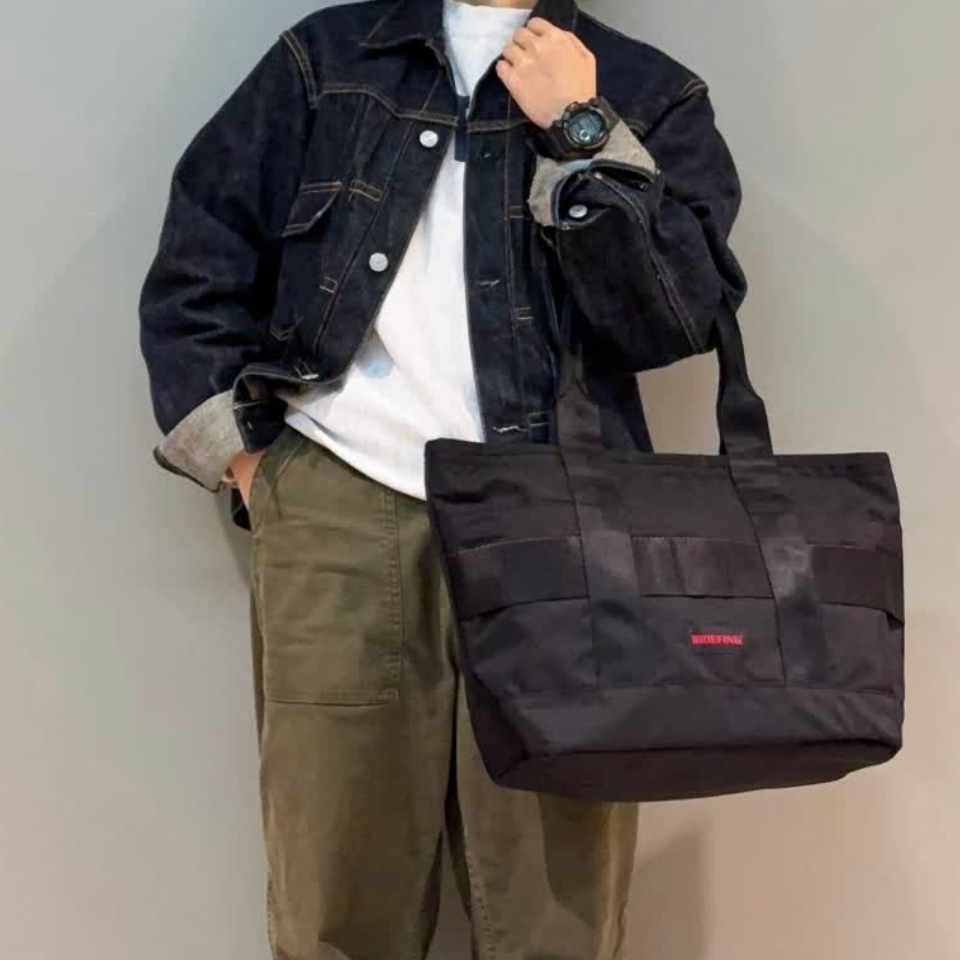 It is made of Ripstop Nylon. which has been made stronger and more durable by weaving a grid of full-dull Cordura yarn that is thin but not transparent and has a characteristic matte texture. This tote has a high storage capacity and is a perfect size for any occasion.