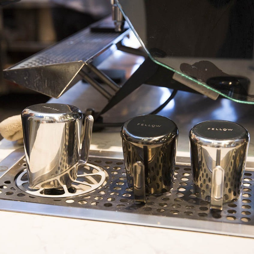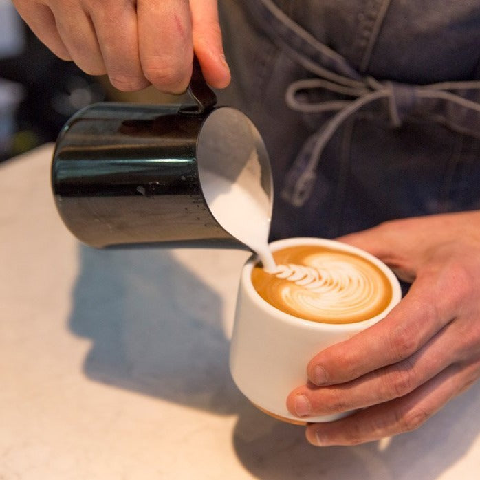 Meet Eddy Steaming Pitcher. the barista’s paintbrush for pouring precise latte art. The fluted spout. unique sharp front crease. and tapered body work in tandem to Monet your milk.