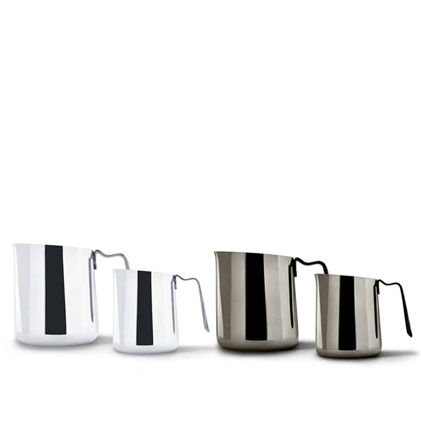 Eddy’s unique sharp front crease runs the length of the body. This crease moves milk forward toward the spout in one seamless motion for an intuitive pour.