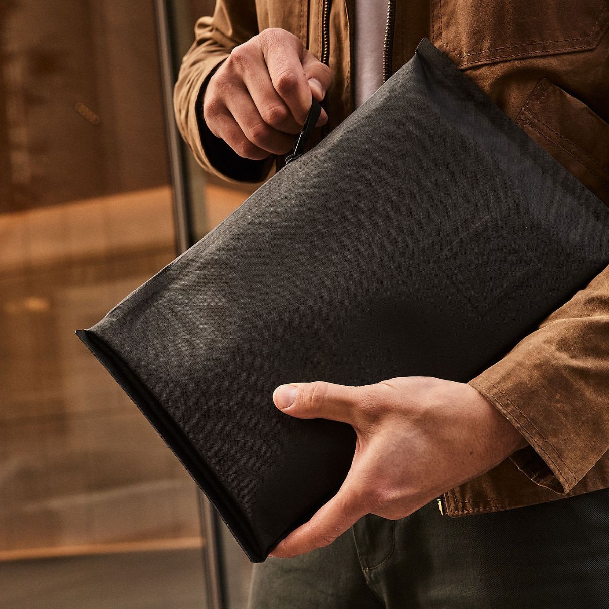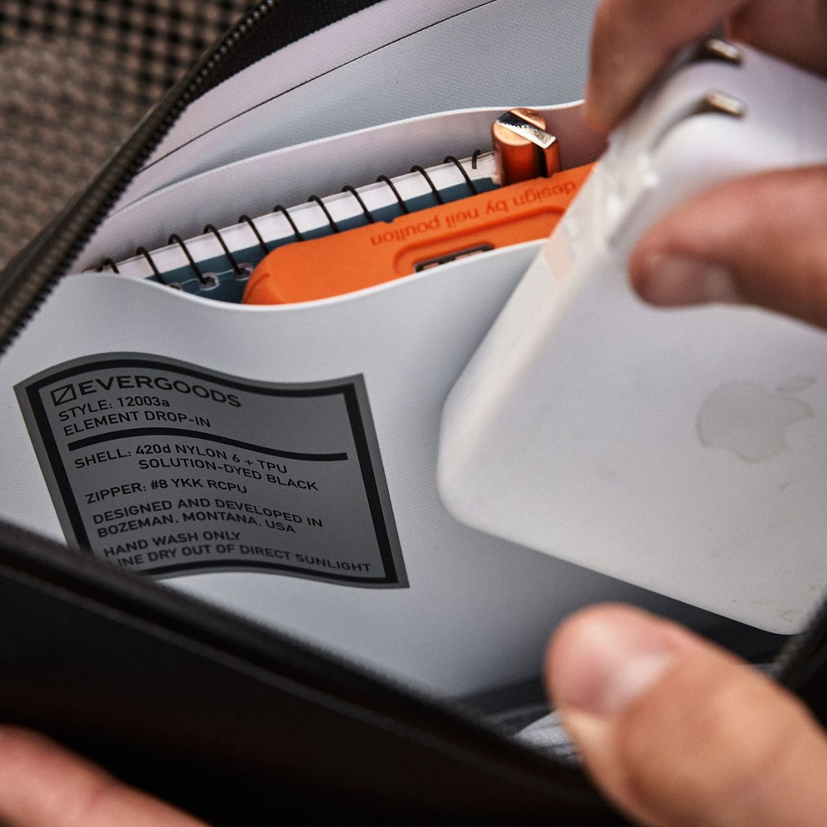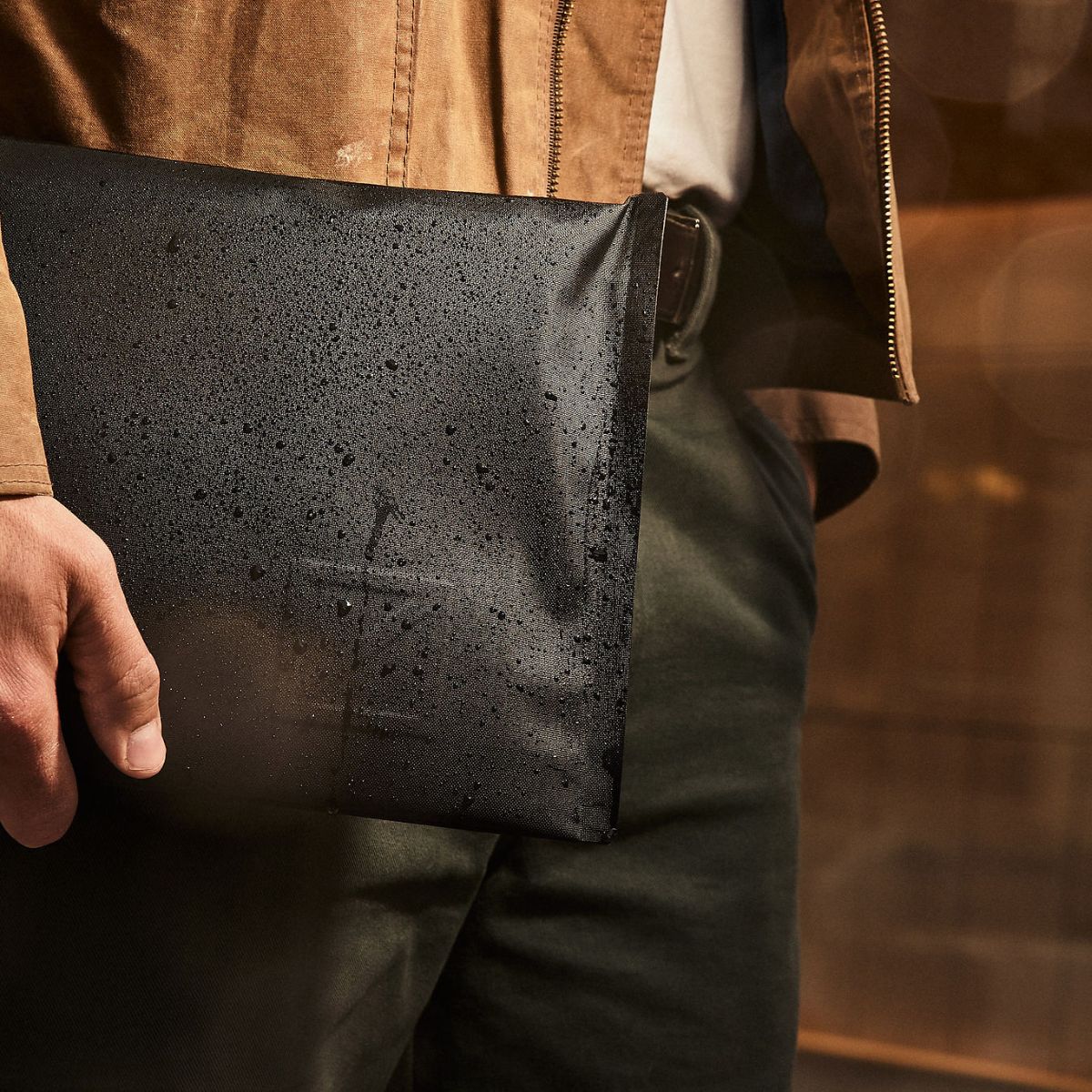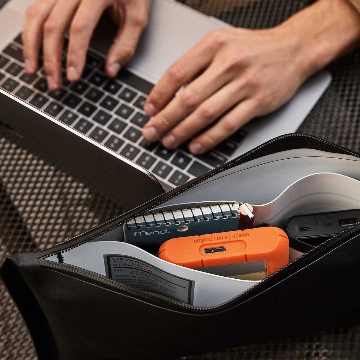 EDI was designed to prioritize handheld carry as your quick-access clutch. but it also excels as a a extra layer of weather protection within our backpacks and duffel. EDI fits in our stretch woven sleeves and laptop compartments for all standard EVERGOODS bags.