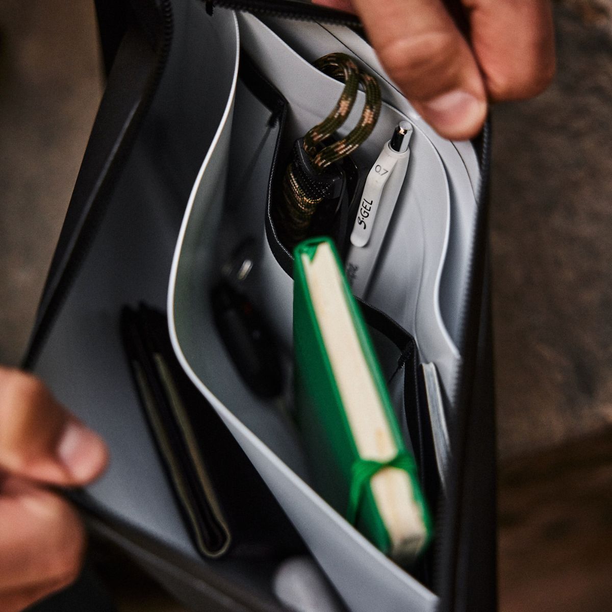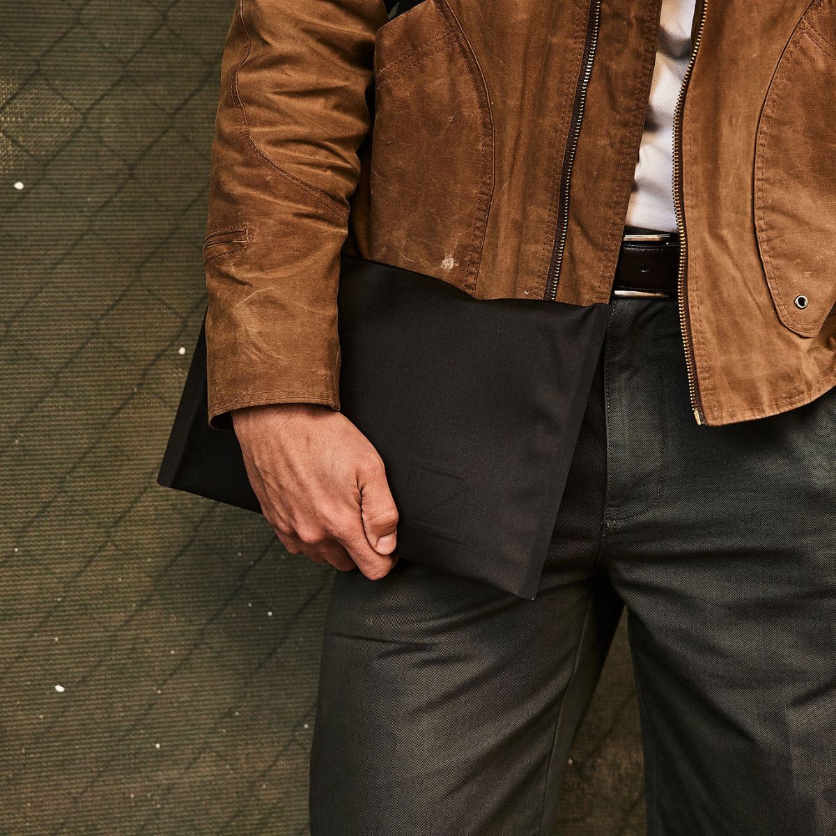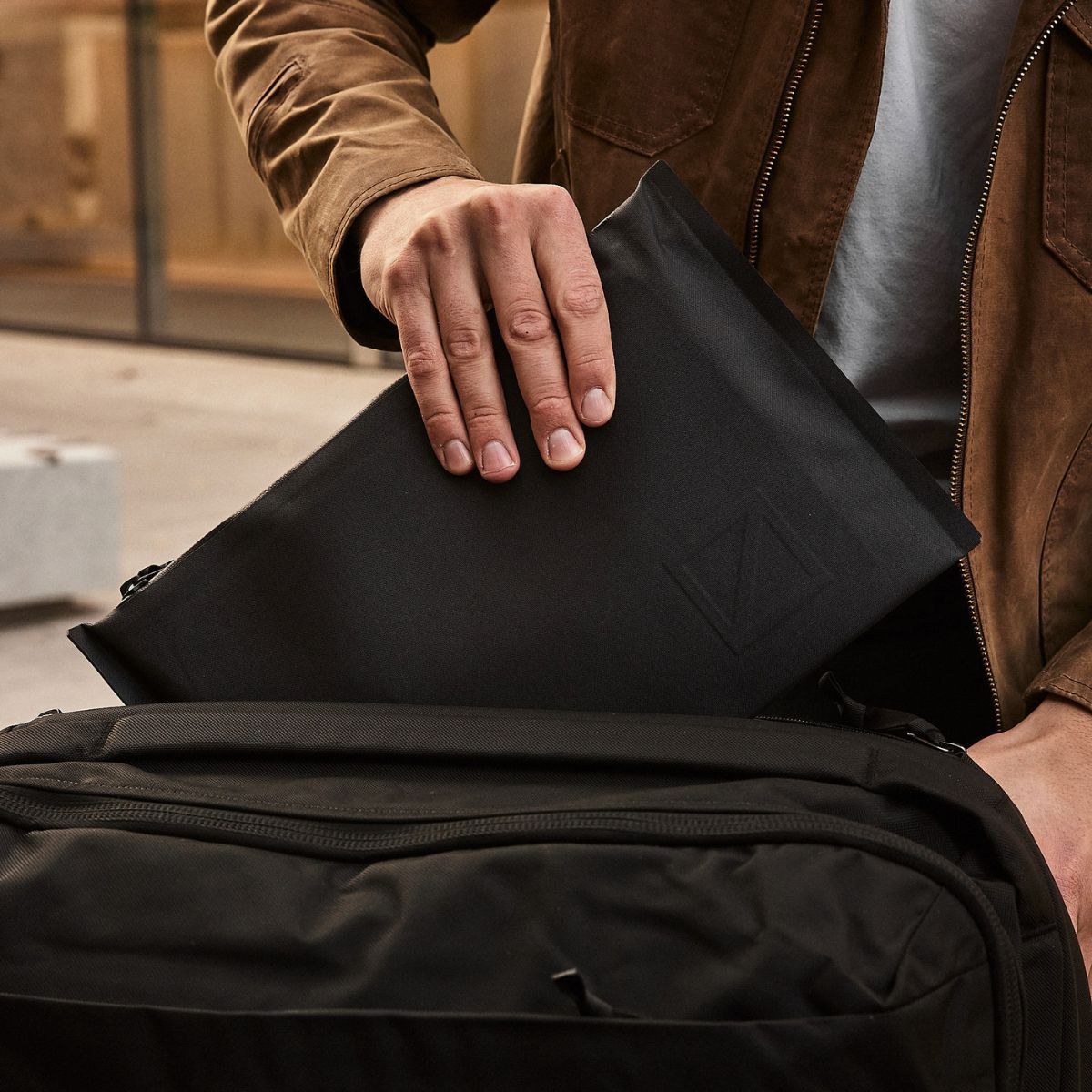 EDI was designed to prioritize handheld carry as your quick-access clutch. but it also excels as a a extra layer of weather protection within our backpacks and duffel. EDI fits in our stretch woven sleeves and laptop compartments for all standard EVERGOODS bags.