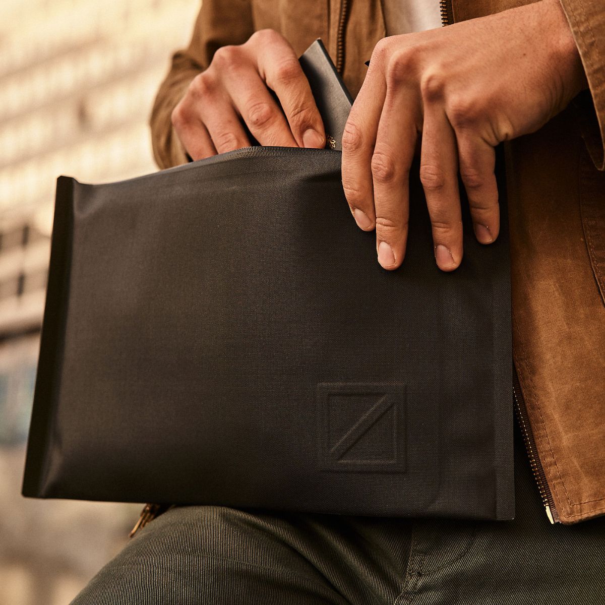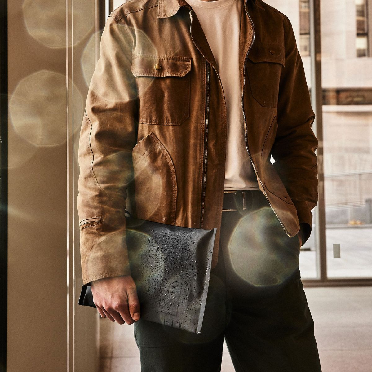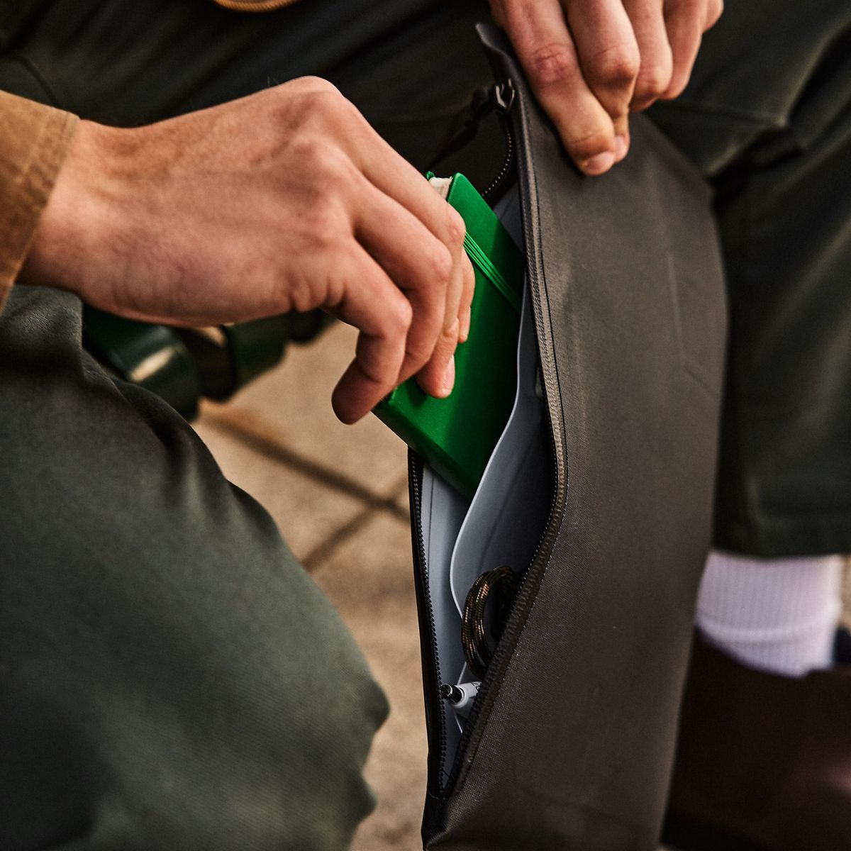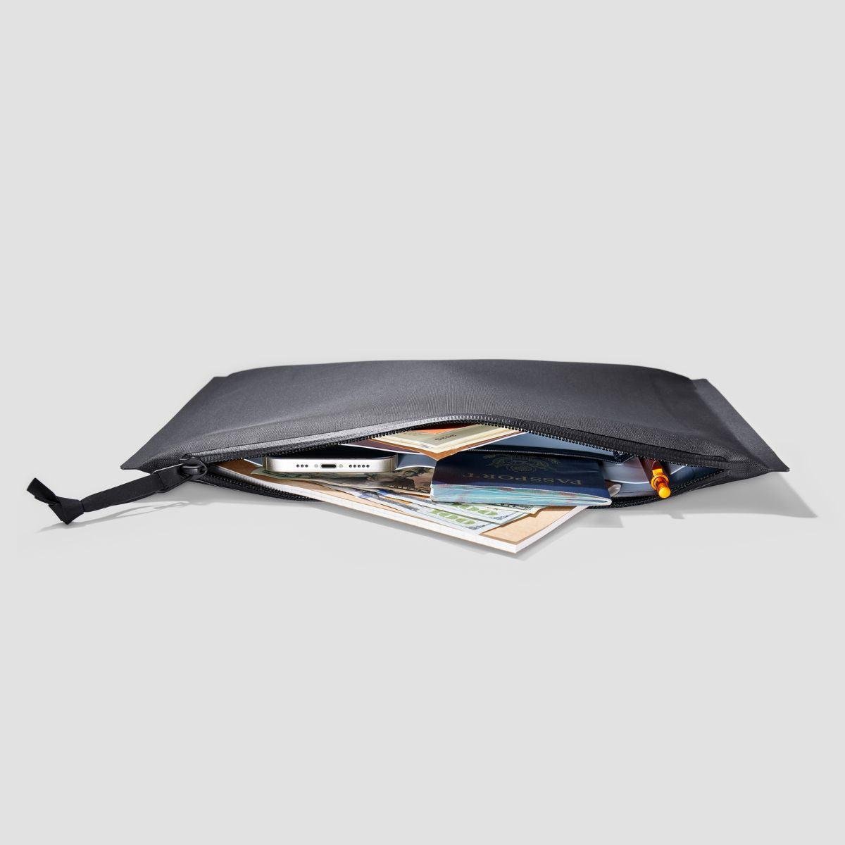 EDI was designed to prioritize handheld carry as your quick-access clutch. but it also excels as a a extra layer of weather protection within our backpacks and duffel. EDI fits in our stretch woven sleeves and laptop compartments for all standard EVERGOODS bags.