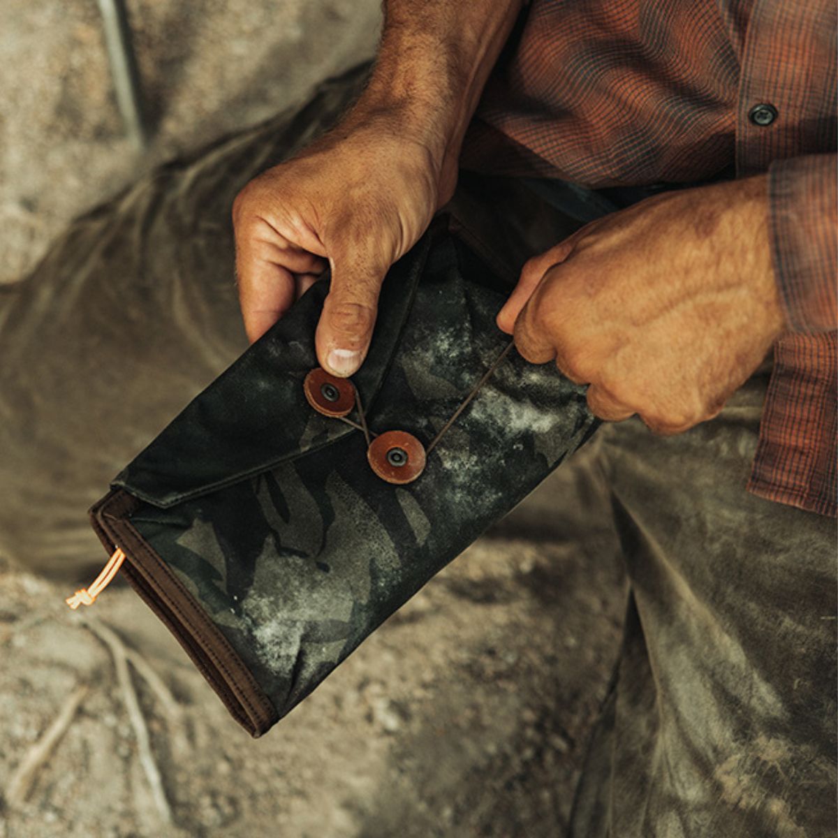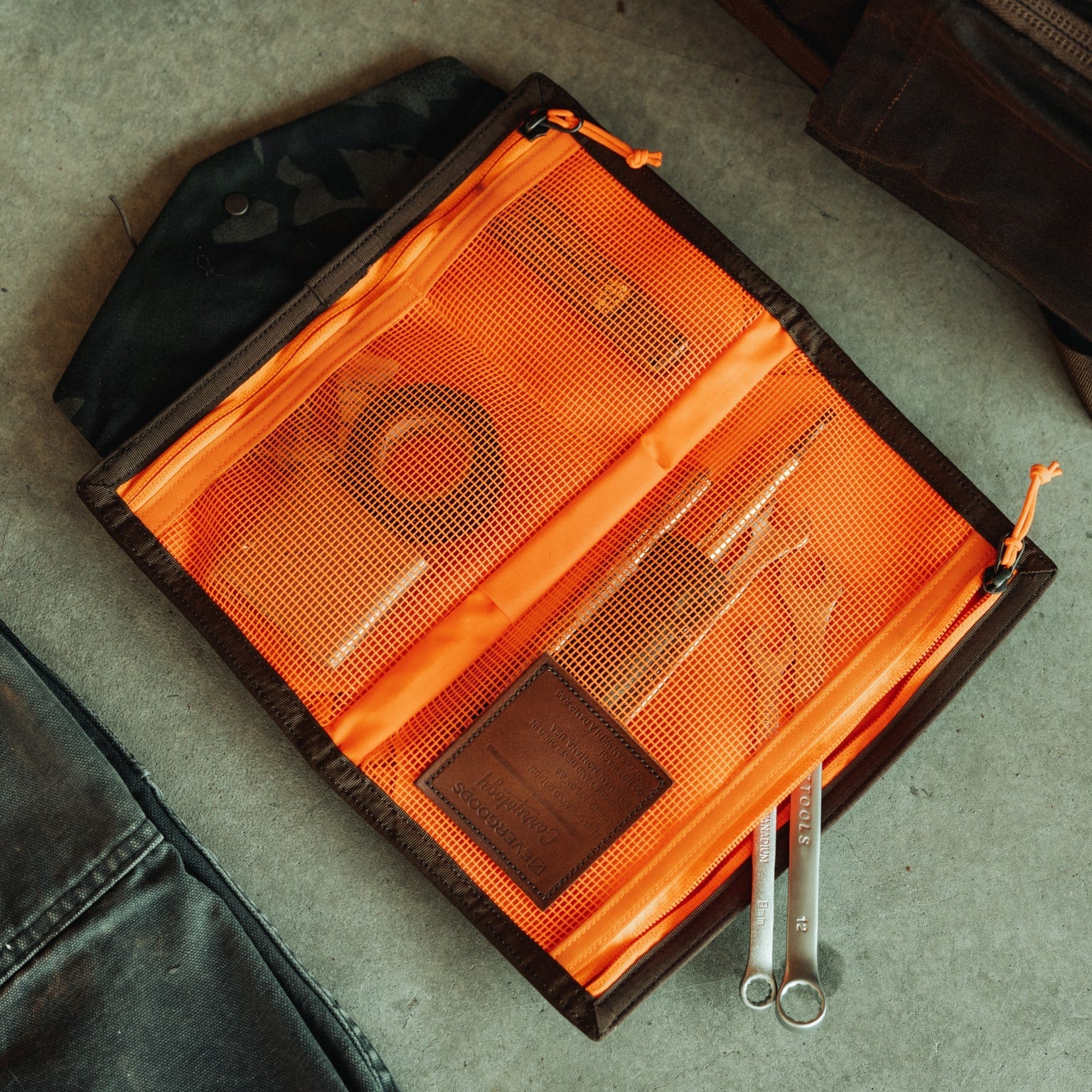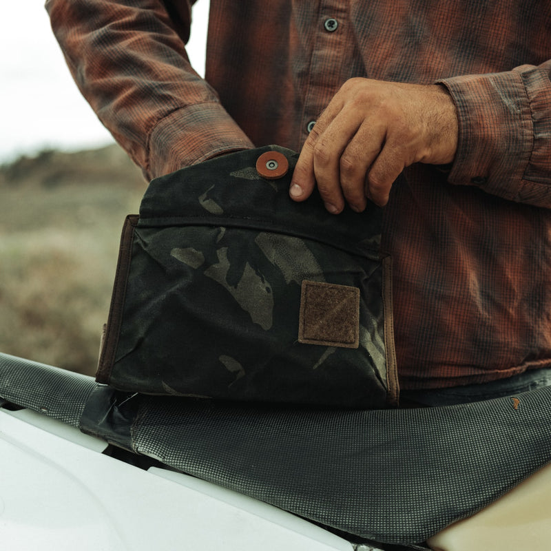 Our everyday organizer pouch in a custom limited-edition waxed canvas shell.