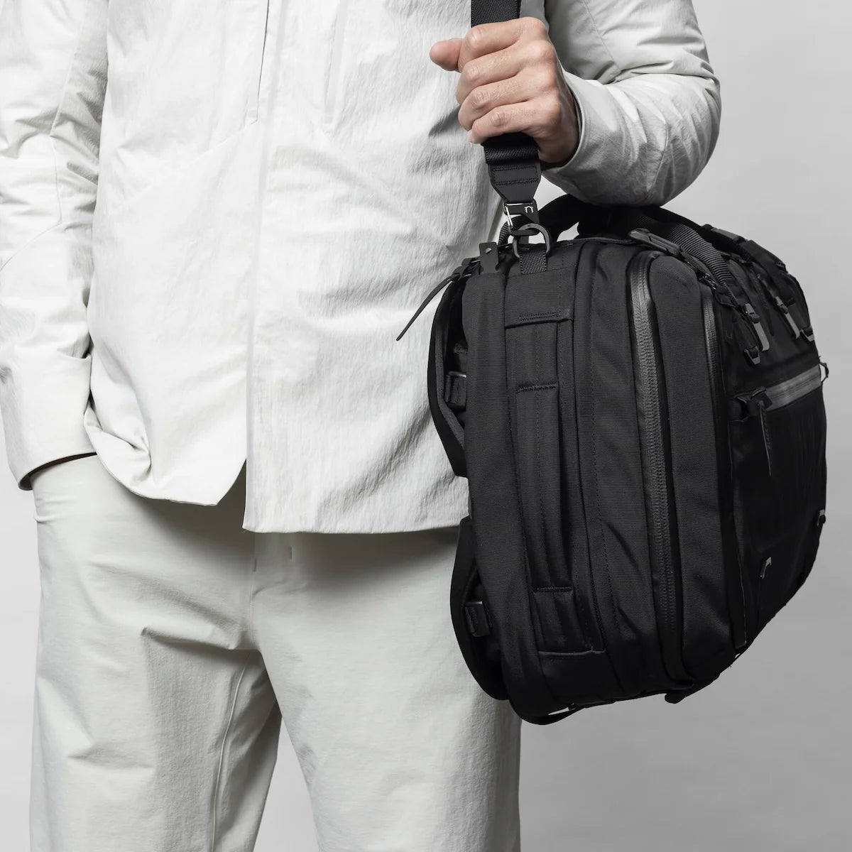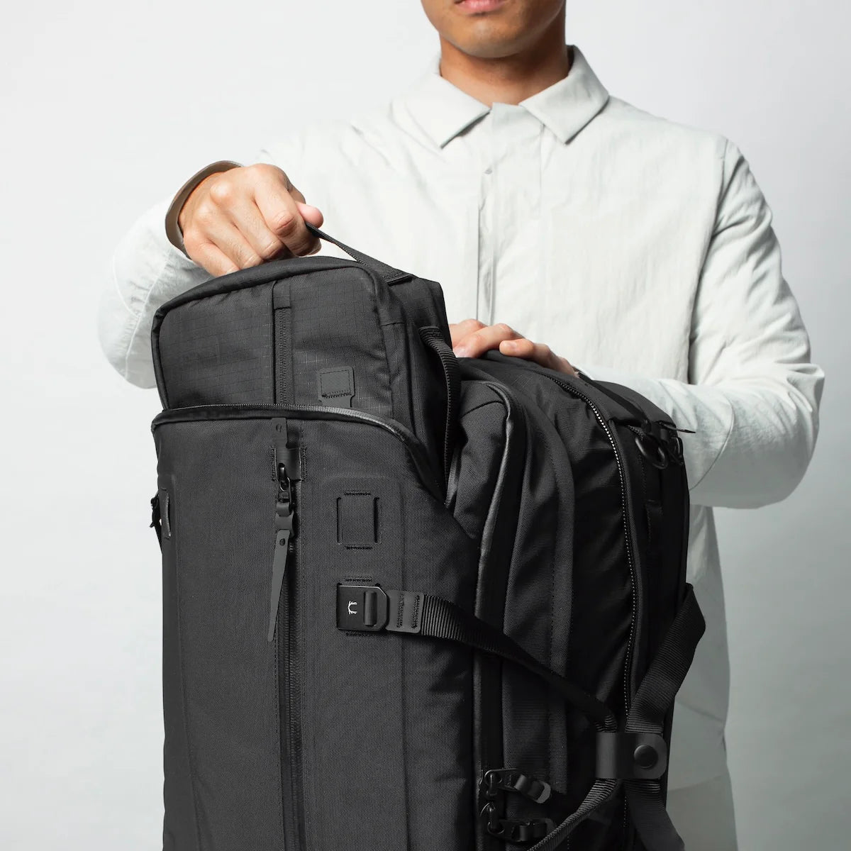 This FORGE is carry-on ready and built to travel. It starts at 30 liters and expands to 40. Like the original FORGE it’s designed to be carried 3-Ways : Backpack. Brief and Shoulder Bag.
