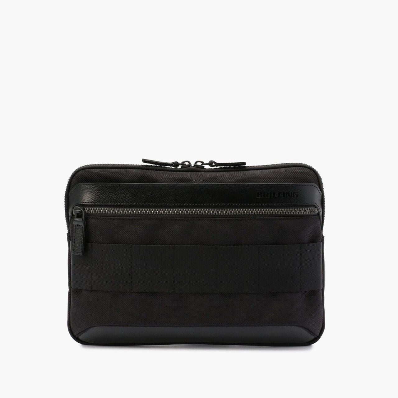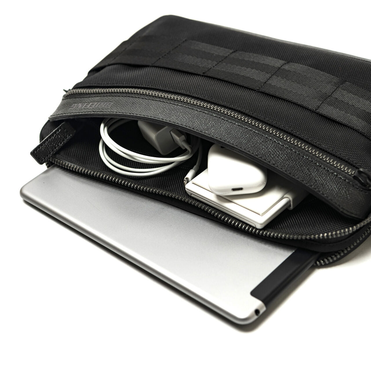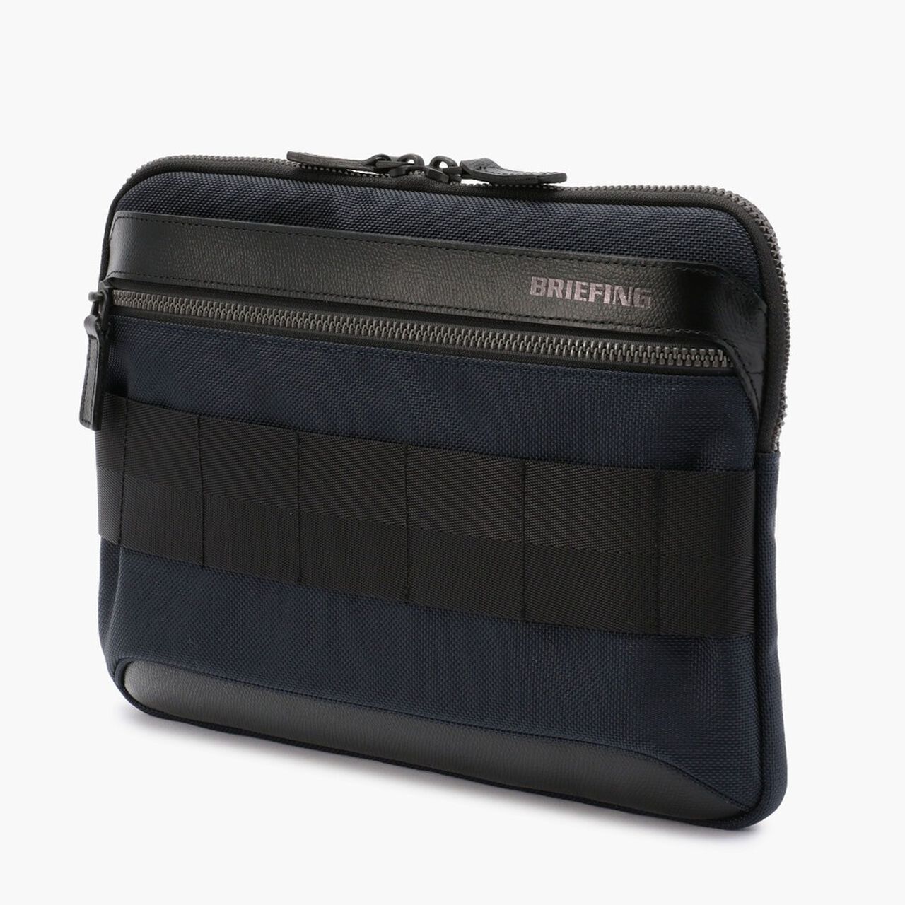 A perfect grab-and-go pouch. this clutch fits all the essentials: credit cards. phone. change. a pen and your keys. Made of a water proof leather and 1680 denier nylon. a durable and abrasion resistant material. The interior includes a padded laptop and tablet compartment that fits up to 11. The front features pocket for your smartphone and other small items such as chargers and cables. The brand’s logo on the leather gives it a premium feel. while the chic design retains its BRIEFING character.