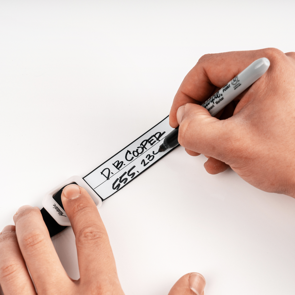 – Write in contact information for luggage or mark contents of bag (permanent ink)