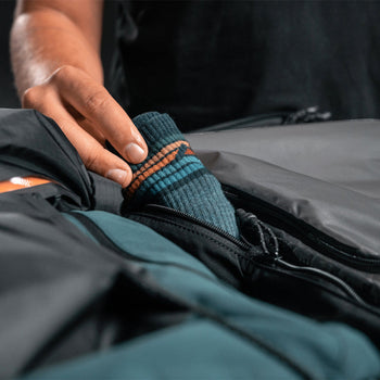 The GlobeRider45 is built from waterproof materials and has YKK® sealing zippers on all external pockets. This pack is designed to withstand light to medium precipitation for short periods. Outdoor coatings add further protection by letting water slick off the fabric.