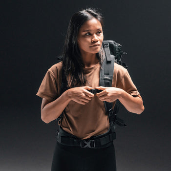 Cushioned and breathable shoulder straps. back panel. and hip belt. Backpacking-inspired carry harness and materials. Overbuilt for comfort.