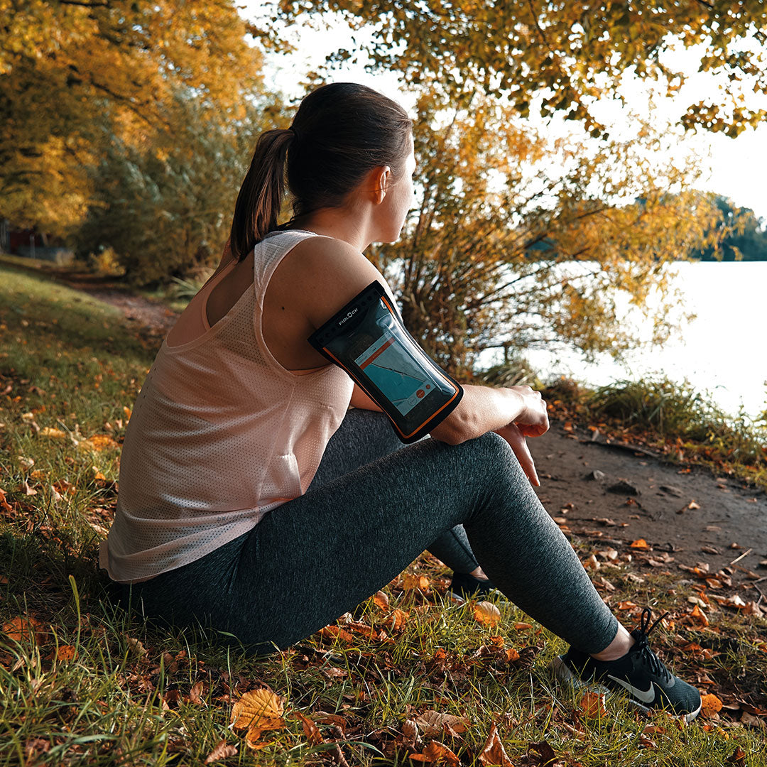 If you are surprised by a downpour while running. the bag on the upper arm is already prepared. Whether it is a drizzle or a rain shower – thanks to the hermetic closure technology. the smartphone is 100% protected against water and even the finest dust.