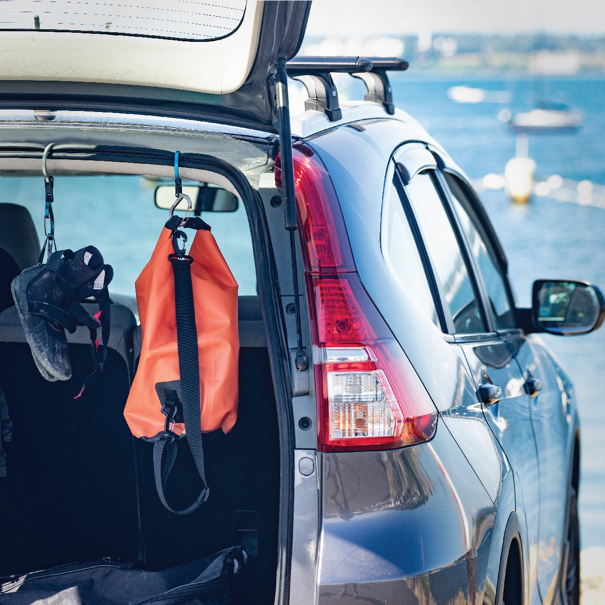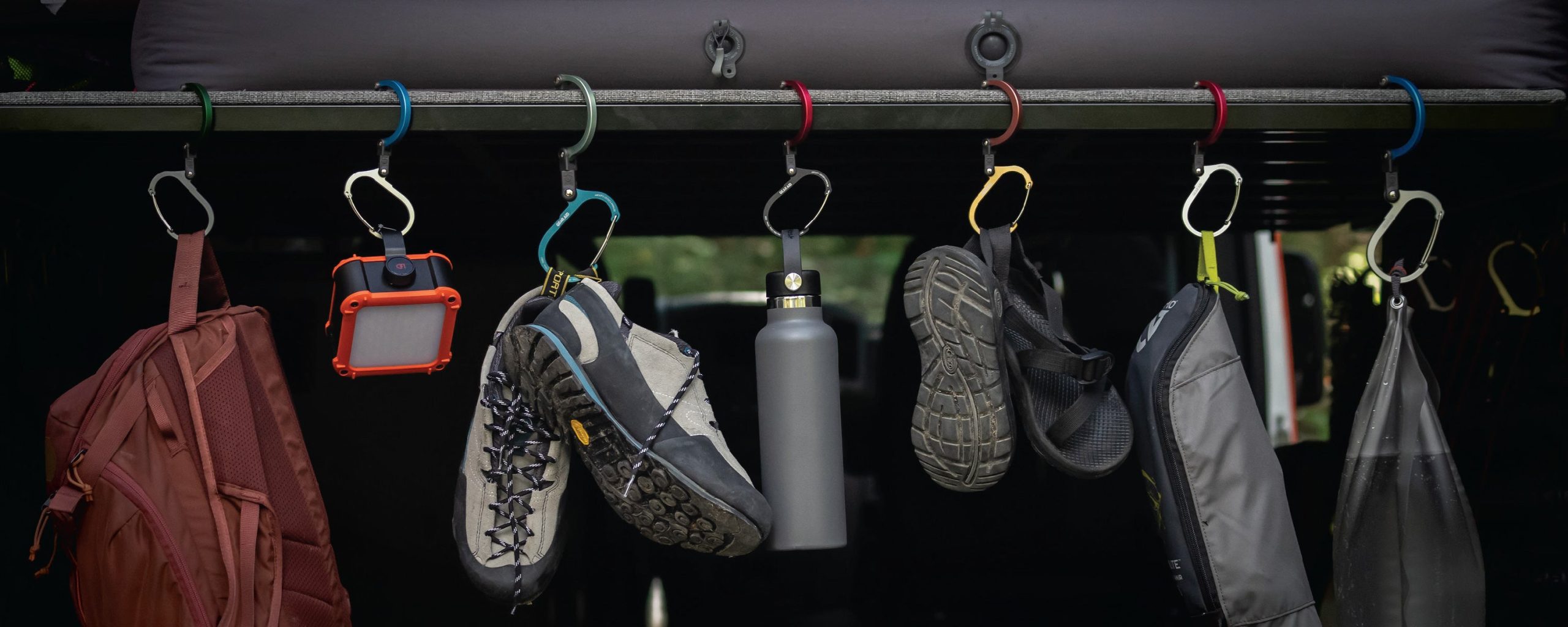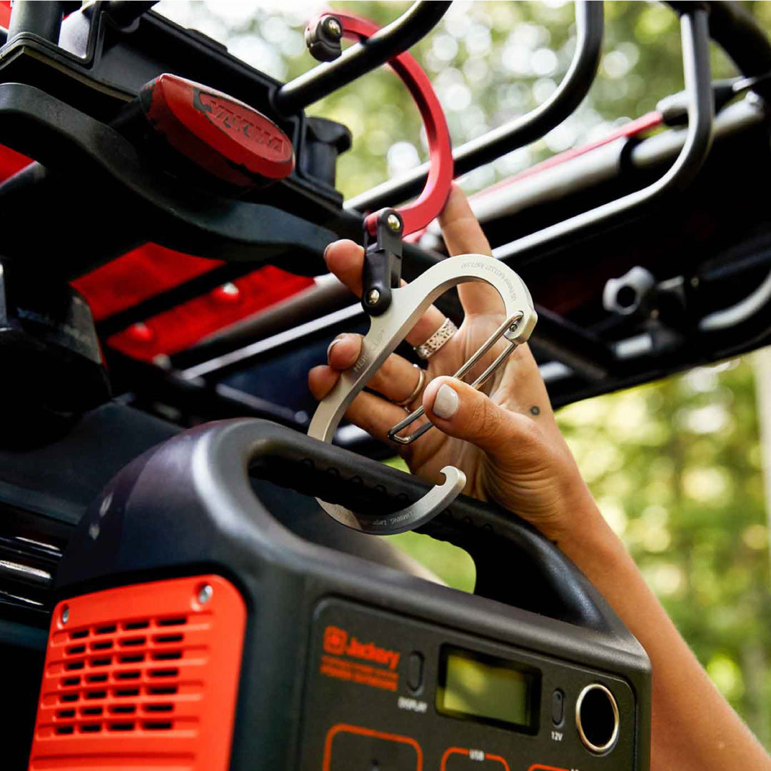 The ideal size for your larger gear needs. Heroclip Large lets you hook and hang up to 100lbs wherever your adventures take you. An impressive 40% larger than our Medium clip. Heroclip Large is the ideal choice for sizeable items including kayaks. floodlights. backpacking packs. and paddleboards. This large hybrid-style clip lets you hook. hang. and carry heavier gear to keep it off the ground.