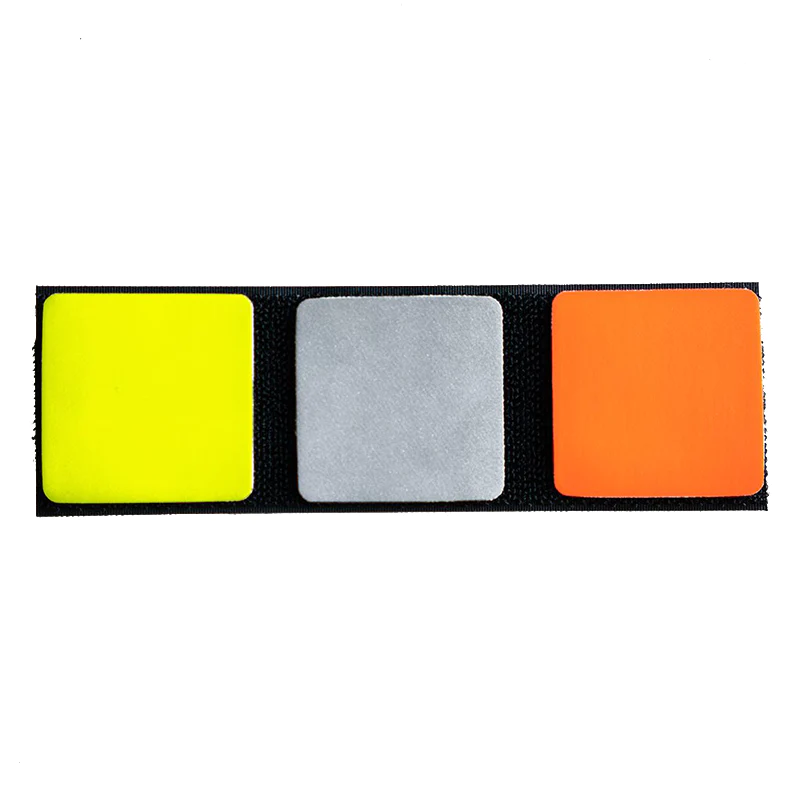 Customize and add increased functionality to your EVERGOODS pack(s) with 3 high-vis patches using material certified for use in industrial safety applications. Precision die-cut and sized to fit securely on the 2×2 inch EVERGOODS loop patch on your backpack.
