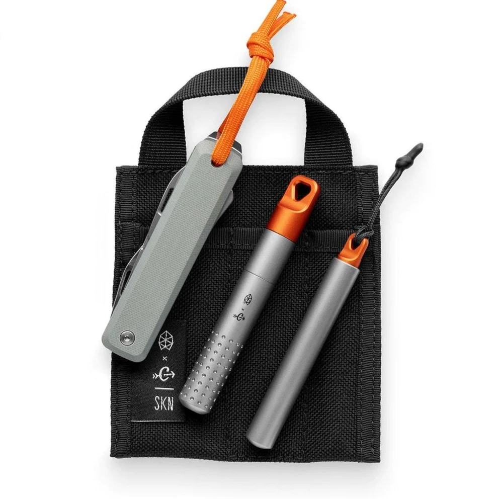 We teamed up with Skinth Solutions in Canada to help create a sheath specifically for this collection. Skinth is the defacto choice for sheaths in the EDC community. and so we knew that this was going to be a good option for the collab. The sheath is 1000D Cordura®. and it’s the perfect size for your pocket or your pack.