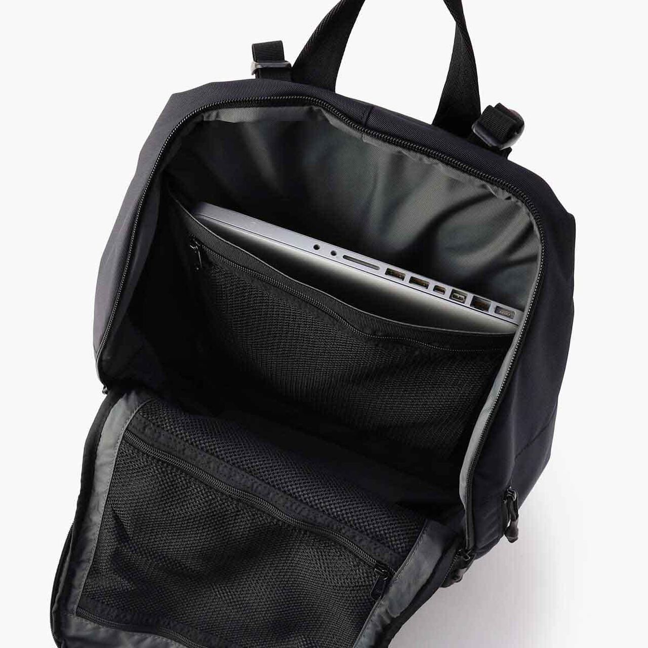 Back: Medium zip pocket x 1 (with cushioning material. Can accommodate a 13-inch PC.)