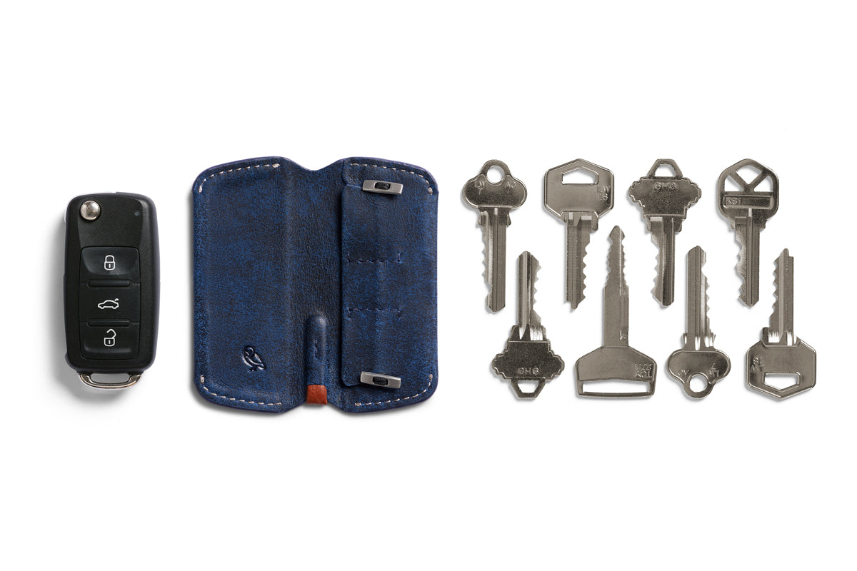 Taking learning from our slim wallets the Key Cover was designed to stay flat in your pocket. while still holding what you need. Keep your keys covered. without the bulk.