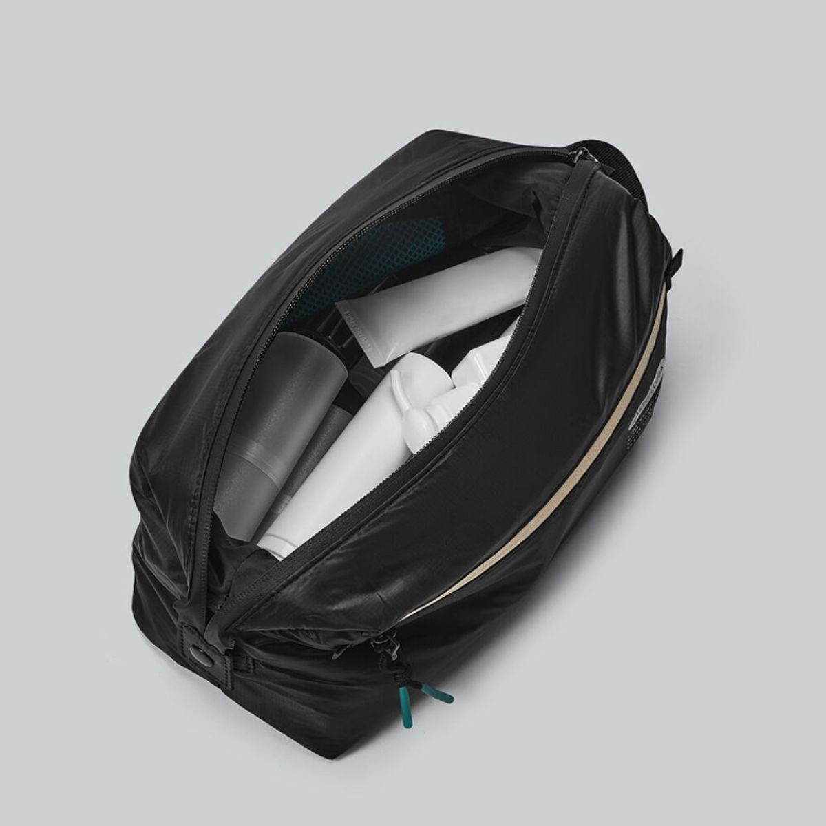 Upgrade your travel with this versatile Washbag. With bigger space for all your toiletries. this bag is perfect for on-the-go use. This practical shape allows you to expand the space by releasing the side press studs. Made with eco-friendly recycled nylon. this bag is both durable and environmentally conscious. The outer zipped pocket offers easy access to smaller items while the lightweight design makes it easy to pack. Whether you’re packing for a weekend trip or a long vacation. the Washbag is a must-have for any traveller.
