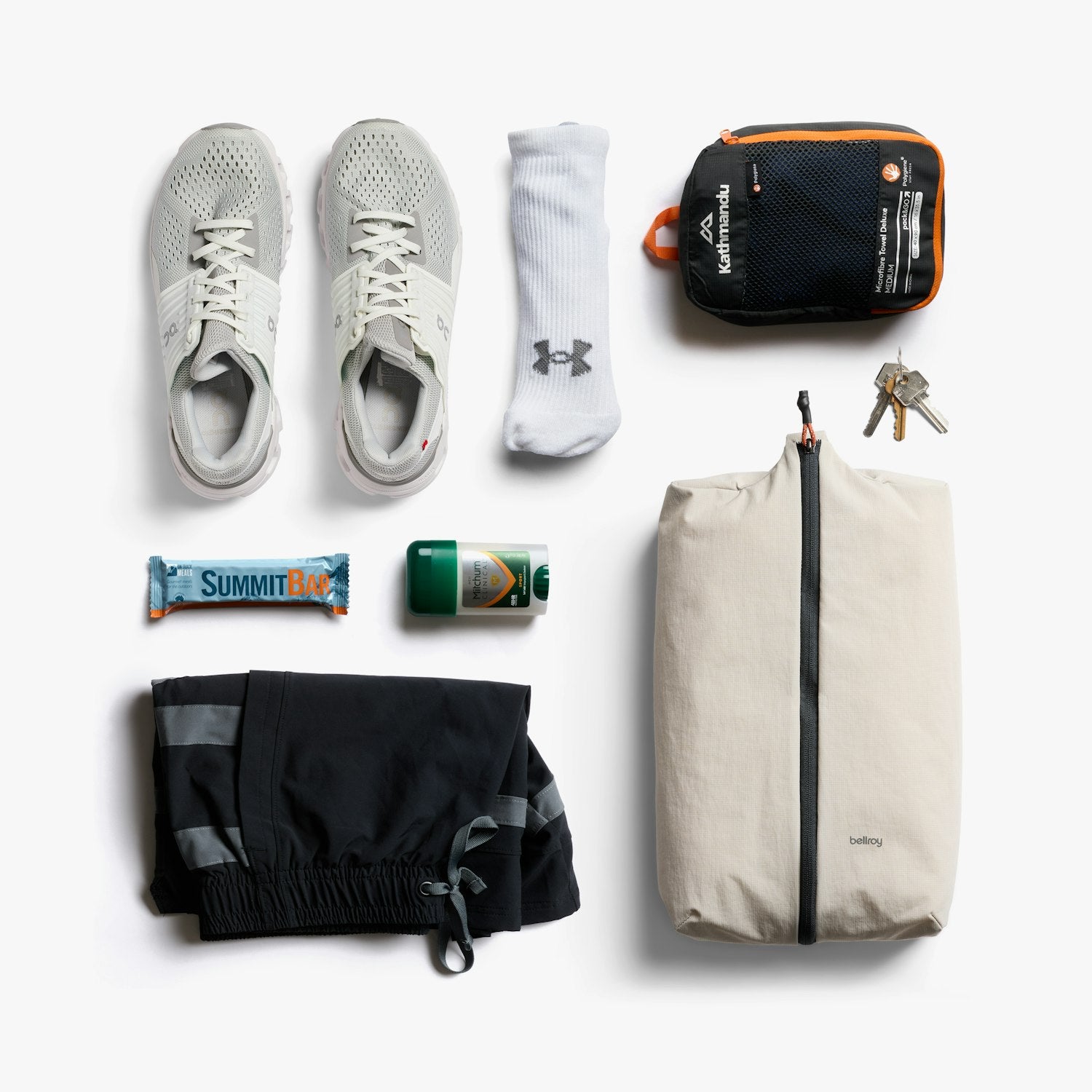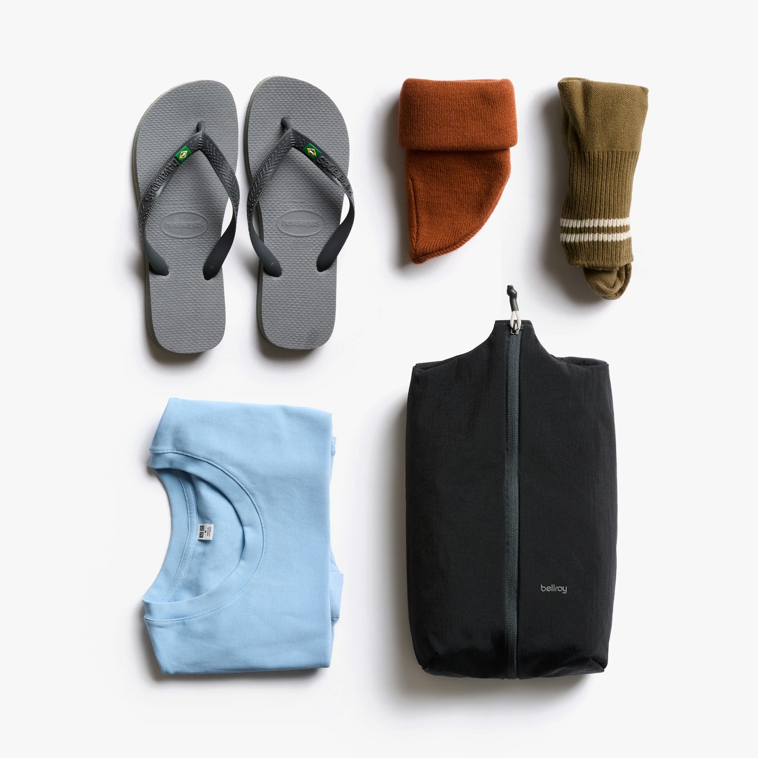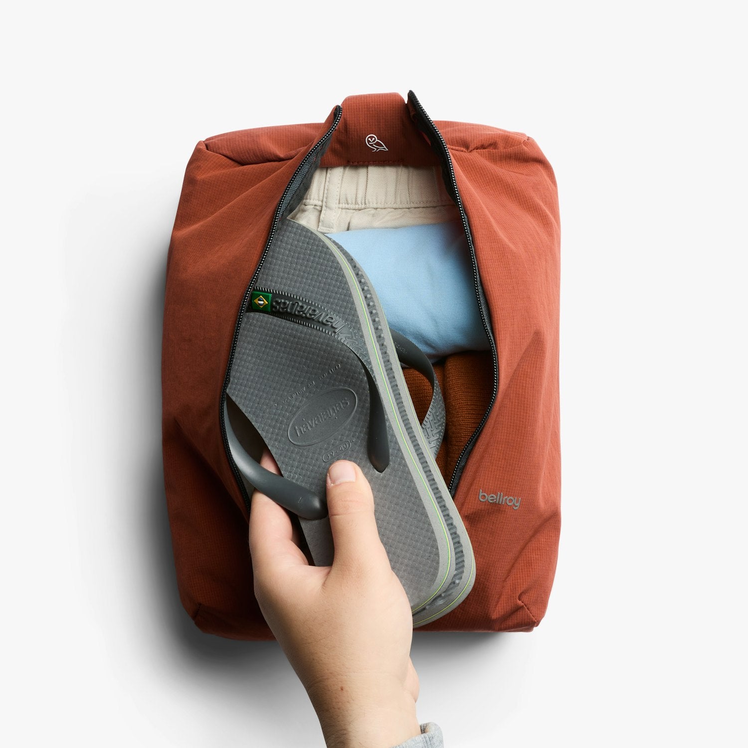 These packing caddies are made with a recycled ripstop that feels light as air and means the caddy is foldable and packable when it’s not needed.