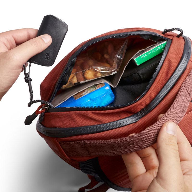 You can hang a bladder from the internal webbing loop. tuck it inside the slip pocket and feed the tube down your shoulder strap. To stay hydrated on adventures.