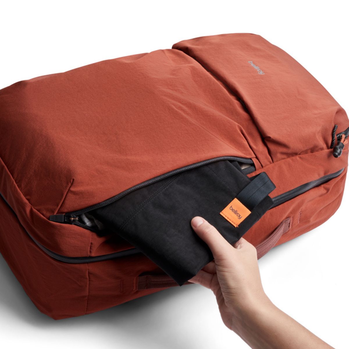 Built-in packing cells and zipped dividers can be popped out when you need to compartmentalize your items. then fold back flat when not in use.