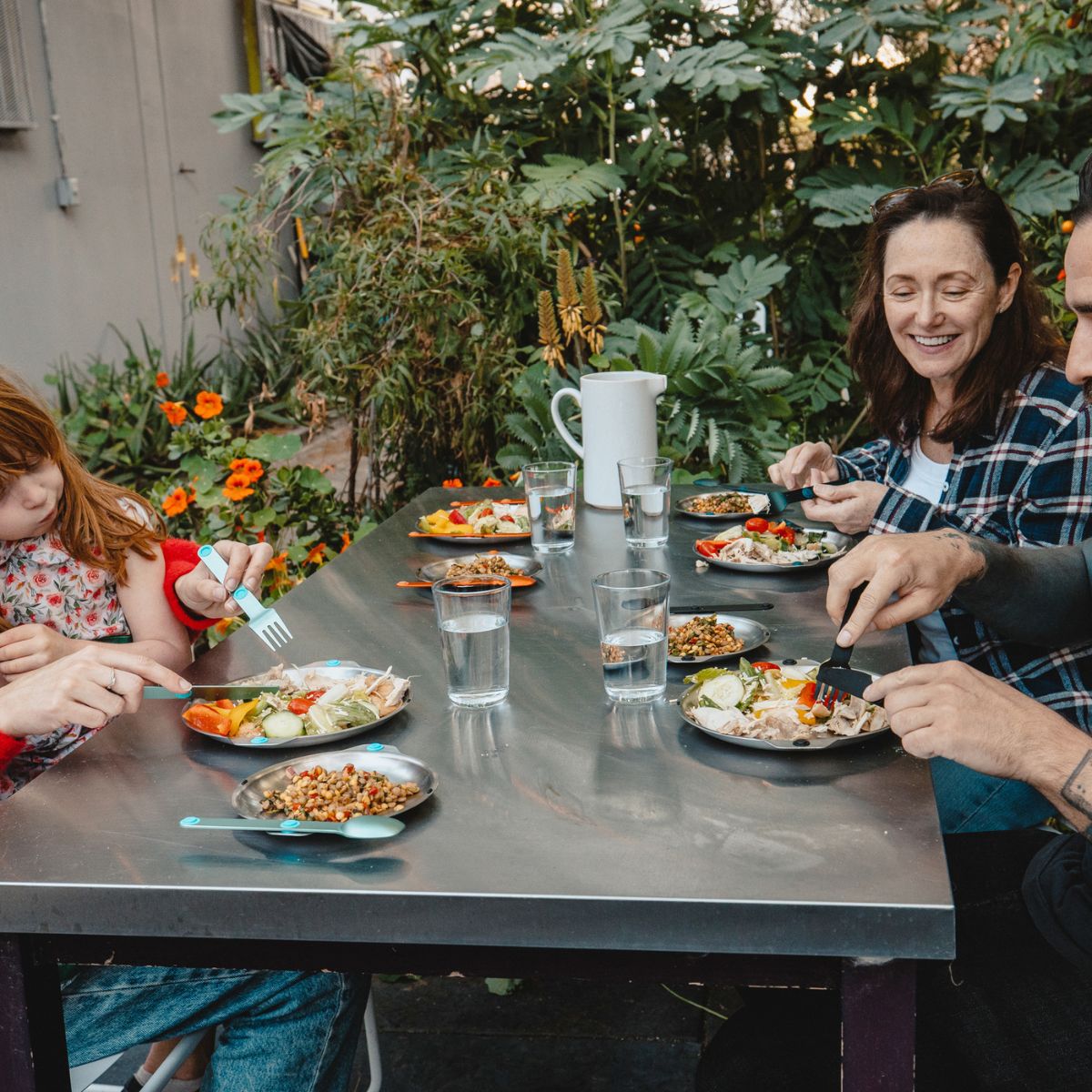 The world’s ONLY magnetically connecting bowls and plates. It’s the last outdoor dining set you will ever need!