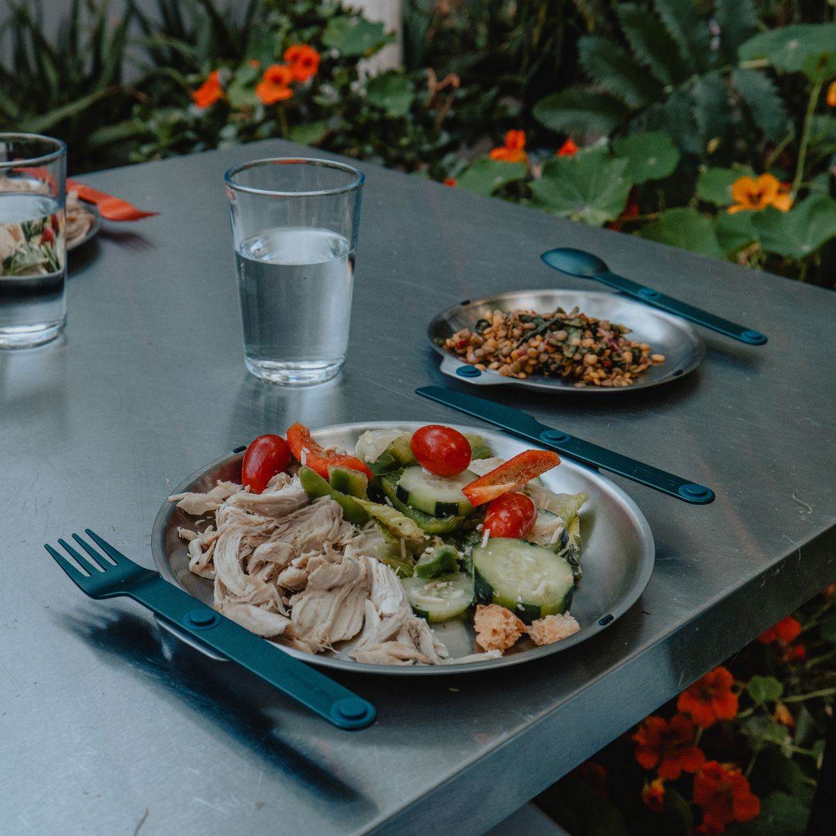 The bowls and plates pair seamlessly with the Magware Cutlery. allowing you to carry the utensils hands-free. Attaching the cutlery to the plates or bowls means that you keep it away from unhygienic surfaces.