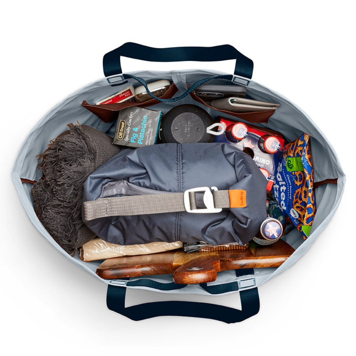 Big capacity. small footprint. This tote can fold up into a neat square. which makes tucking it into your glovebox. luggage or backpack a breeze.