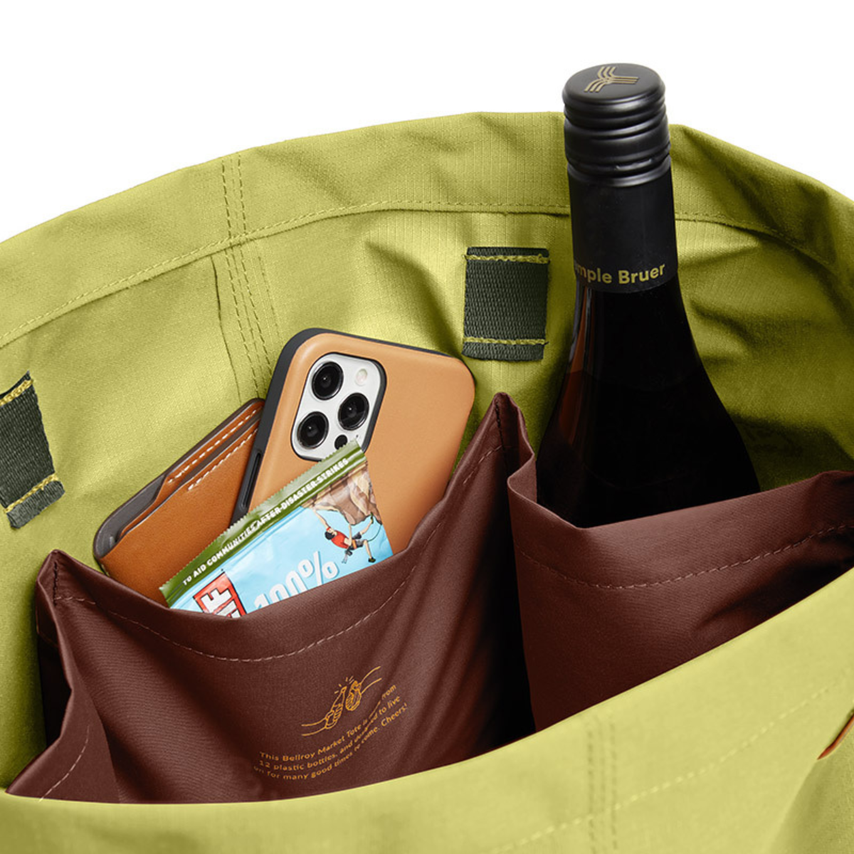A bottle sleeve on each end keeps your olive oil standing upright. so it doesn’t trample your tomatoes.