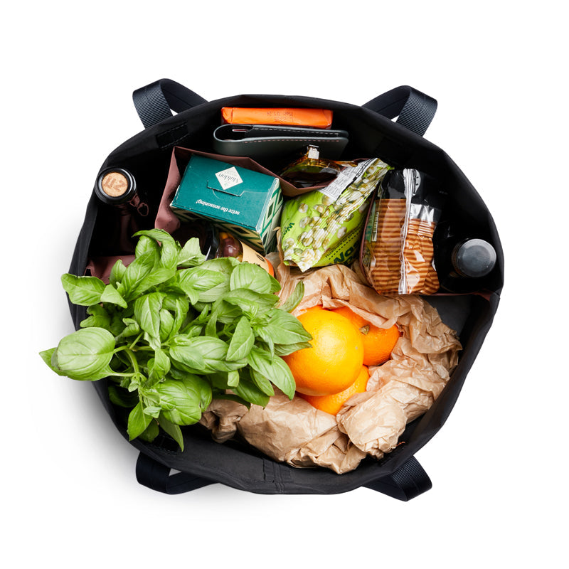 This tote folds up flat and slim. making it easy to stash in your glove box. day bag. luggage or jacket pocket.
