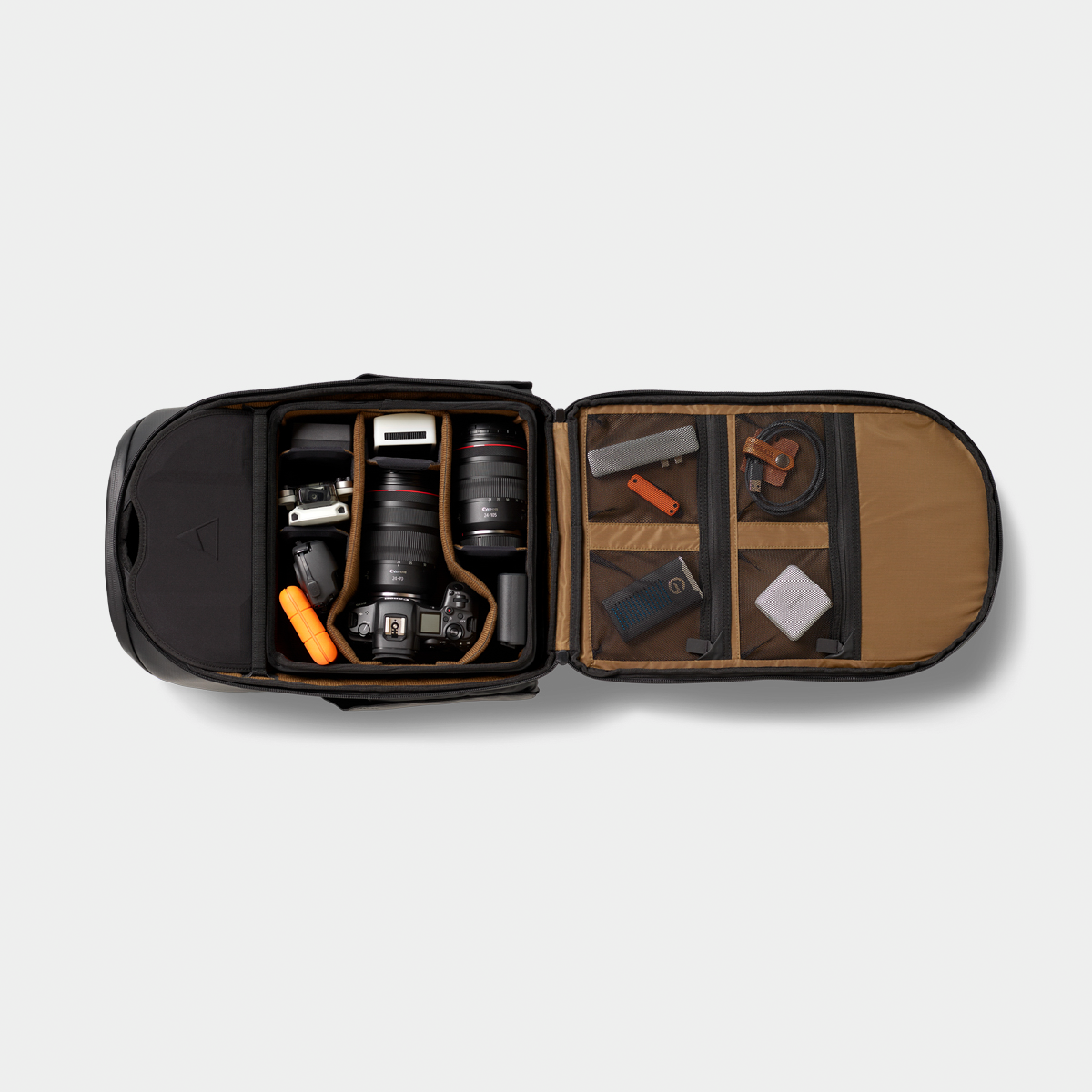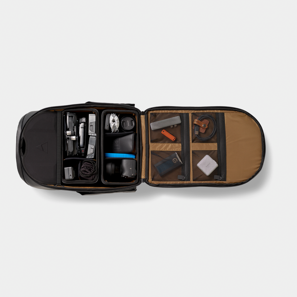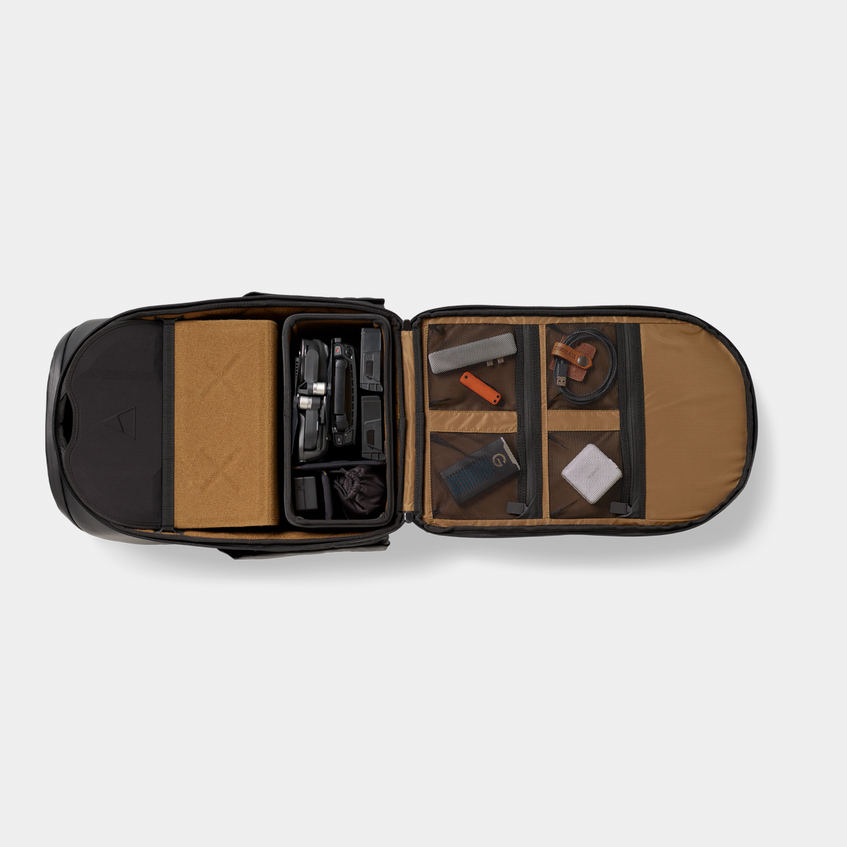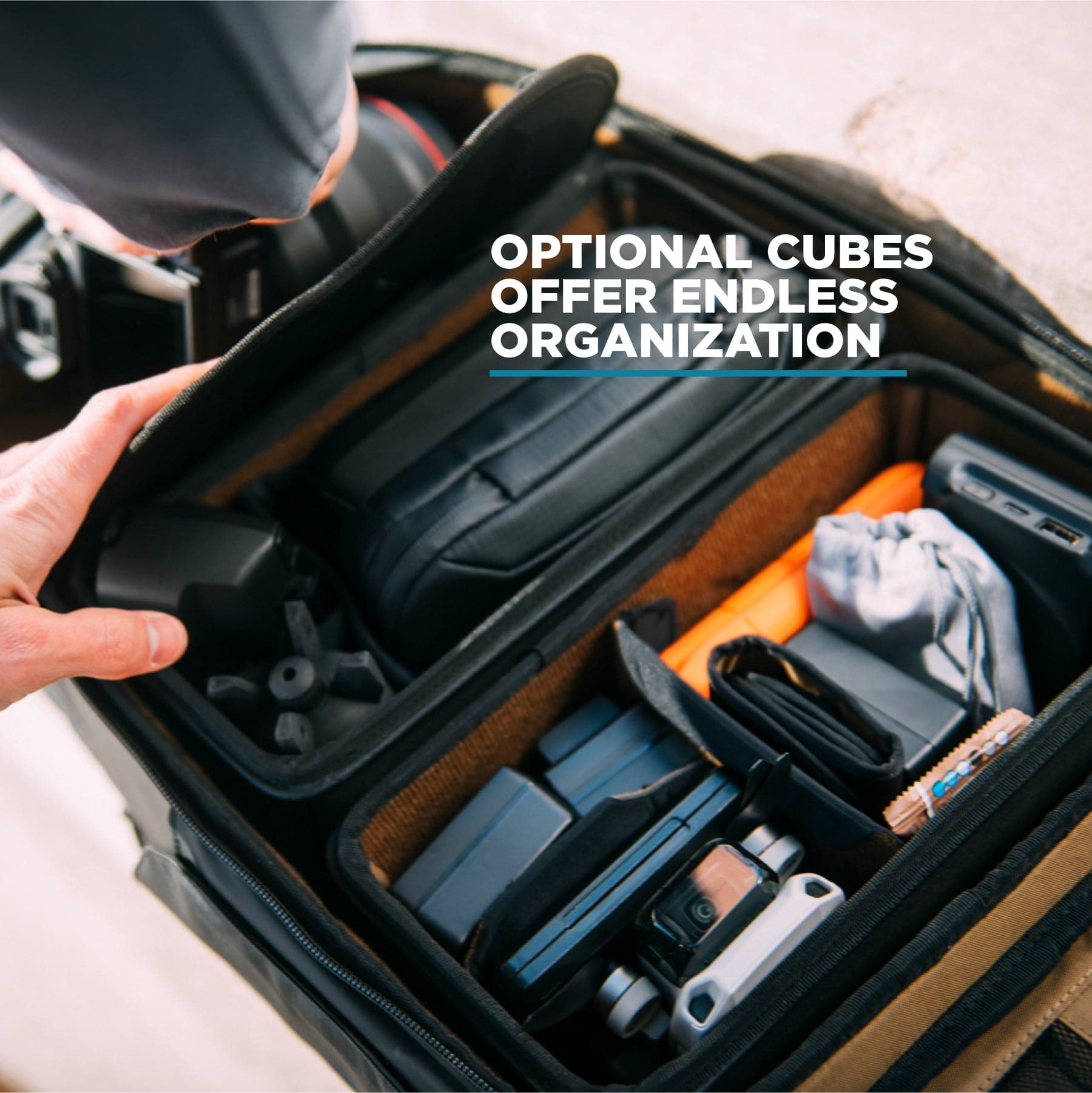 Use one small cube. two small cubes. one large cube or a combination of cubes to keep your systems built out by swapping from camera to drone to everyday items seamlessly. We thought carefully about accessing your gear. and designed a quick and easy top access. an external laptop sleeve (fits up to a 16 MacBook Pro). and full back access. Use the internal articulating ladder system to split up your gear or remove the ladder completely. The ladder system also allows you to expand the top area of the bag. On the inside of back panel. there are four internal zipper mesh pockets for organization of smaller items.