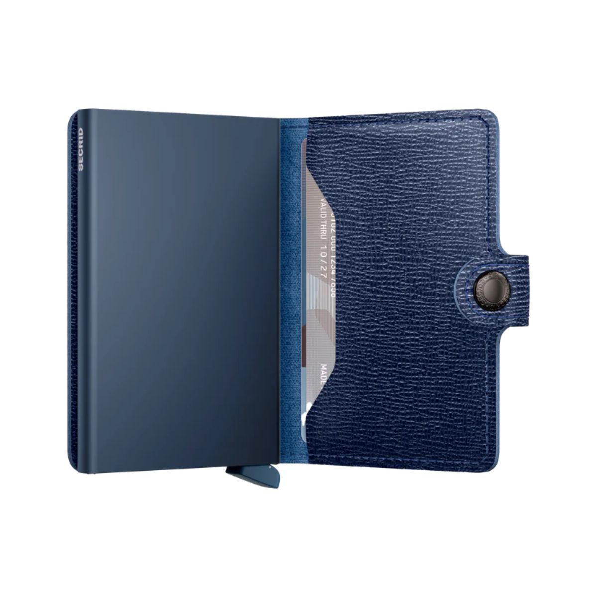 Small in size and surprisingly large in storage capacity. the Miniwallet combines the best of both worlds. The exterior holds banknotes. receipt and cards. while the aluminium Cardprotector allows you to slide out cards with one simple motion and protects them from bending. breaking and unwanted wireless communication.