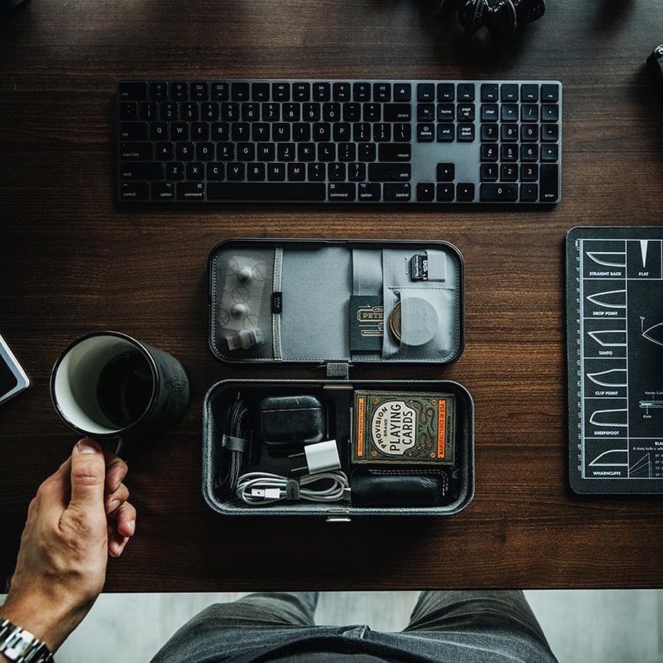 Comfortably store all your daily necessities inside Nest. Separate the top tray from the internal storage to easily retrieve items while you work at your desk.