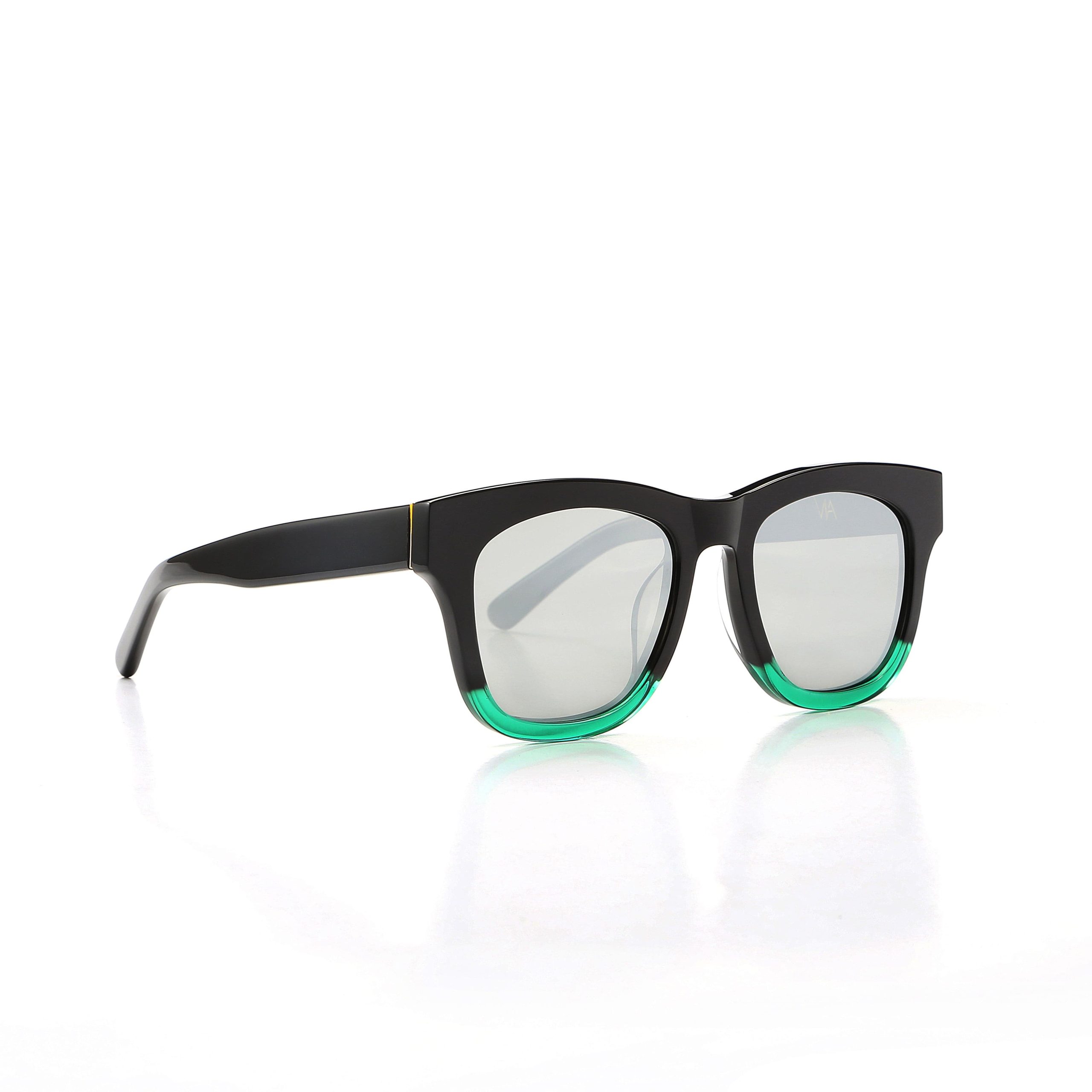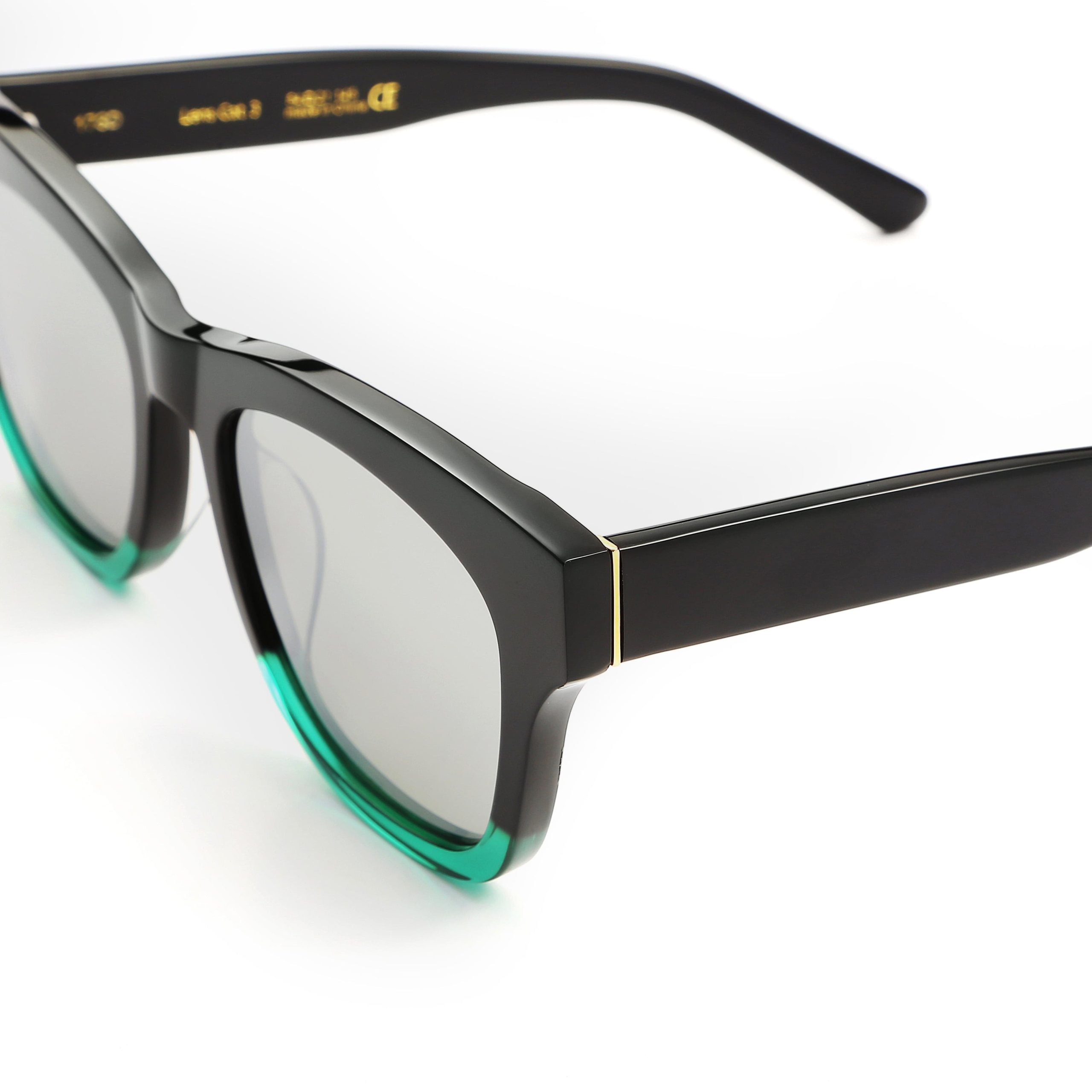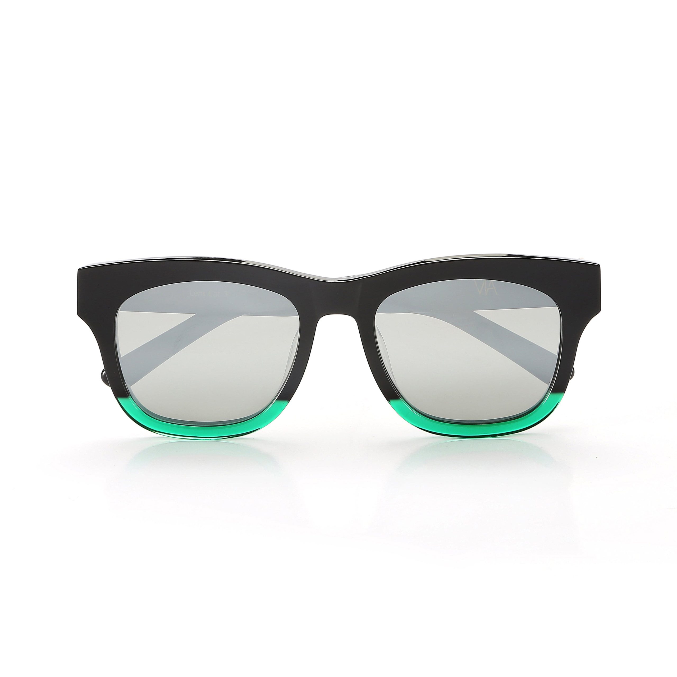 Sushi-green-tone should not be missed in Osaka collection! Wide rectangular frame composed of bi-colored acetate in glossy black and transparent green.