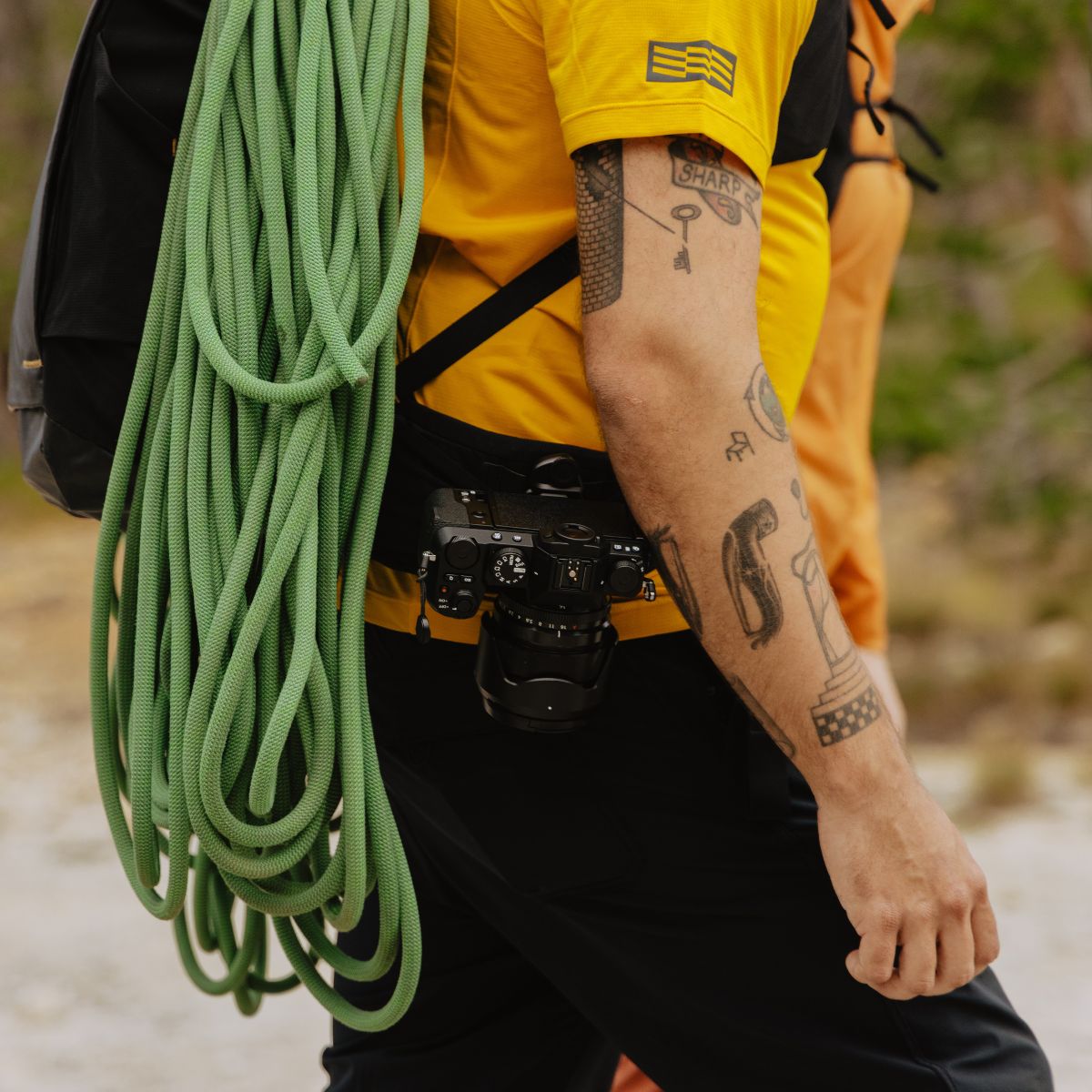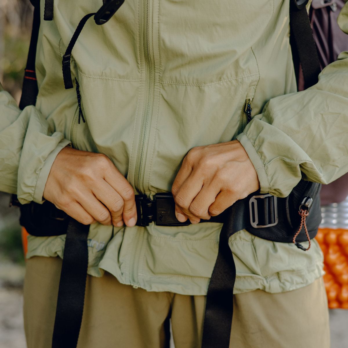 Stabilize your pack and take weight off your shoulders with the Outdoor Hip Belt—the same exact Hip Belt that comes standard with the Outdoor Backpack 45L. You can purchase this Hip Belt either as a replacement. or to add Hip Belt functionality to your Outdoor Backpack 25L. The belt is padded. with a mesh zip pocket (right) and a stretchy slip pocket and Capture Clip* attachment point (left). The belt quickly attaches/detaches via keyhole attachment points located behind the back pad of the 45L/25L Outdoor Backpacks. Multiple keyhole attachment points. as well as widely adjustable webbing length. allow this hip belt to fit a broadly inclusive range of waist sizes—from 24 to 52 (61cm to 132cm). PFAS-free and made from Bluesign approved materials. Fair Trade Certified and 100% carbon neutral.