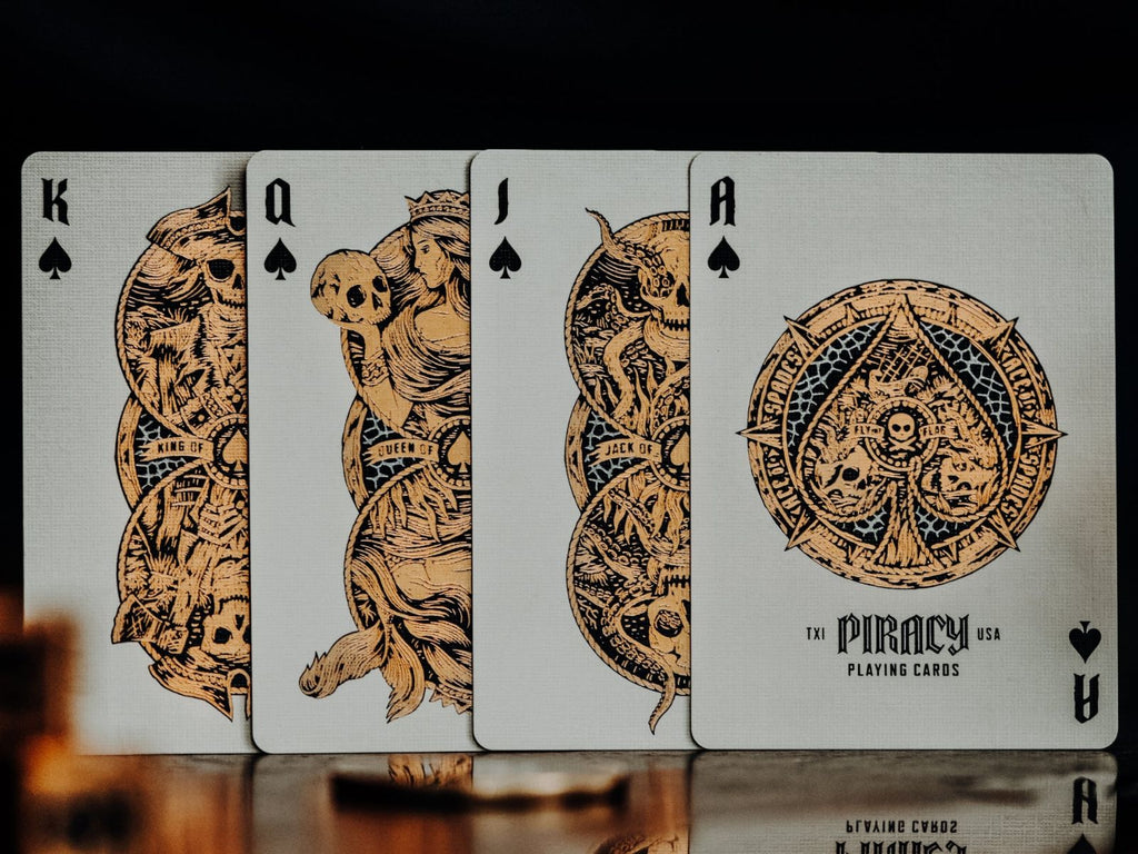 Set sail to a world uncharted and become a dweller of the open seas with Piracy Playing Cards. Secrets and lost treasures wait to be discovered – will you embark on the journey?
