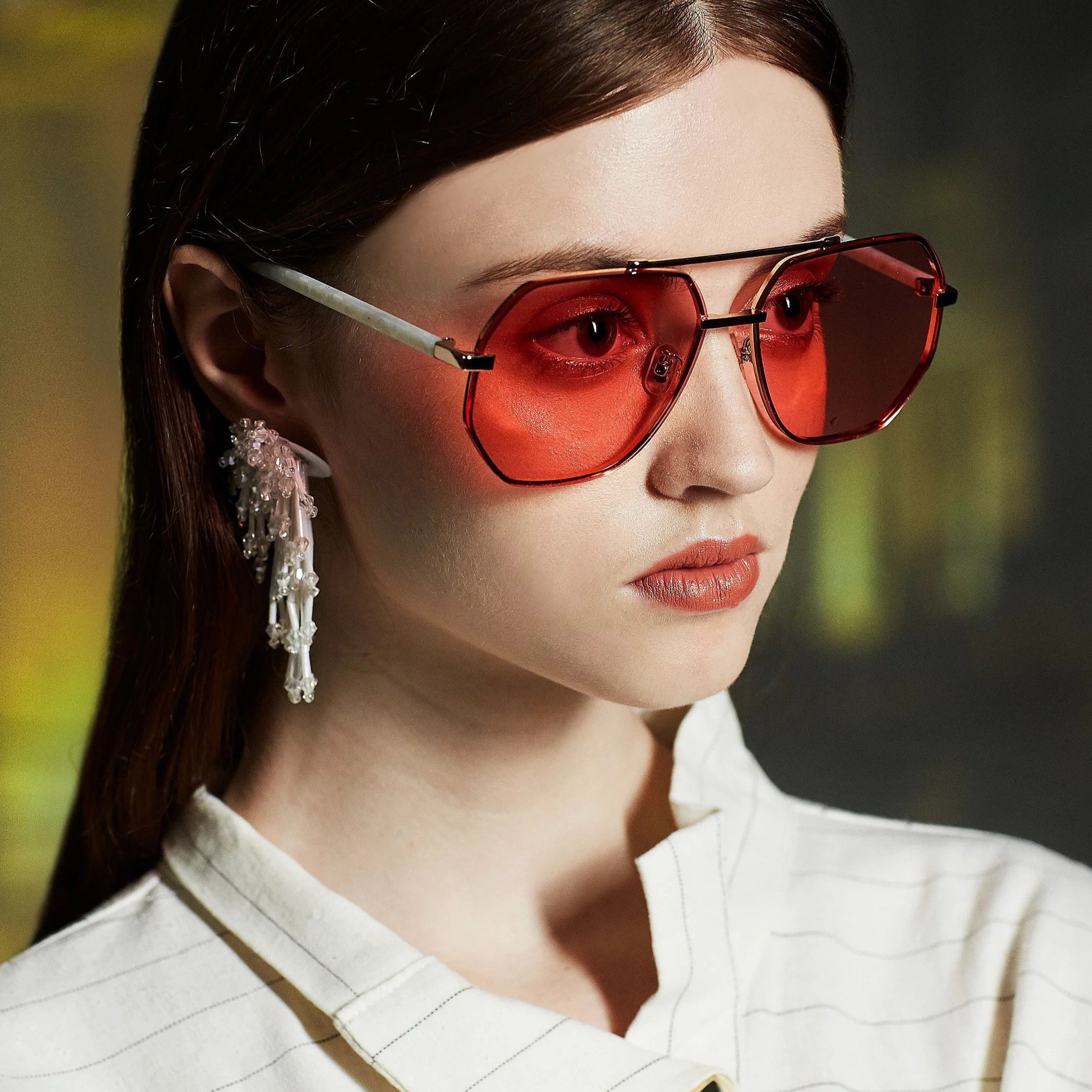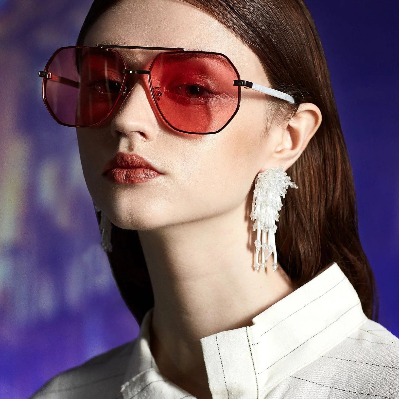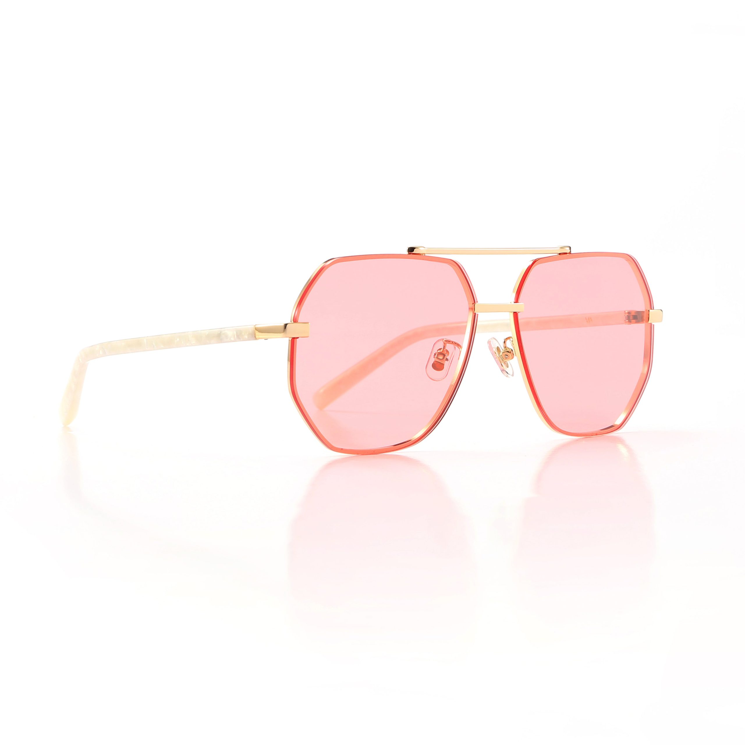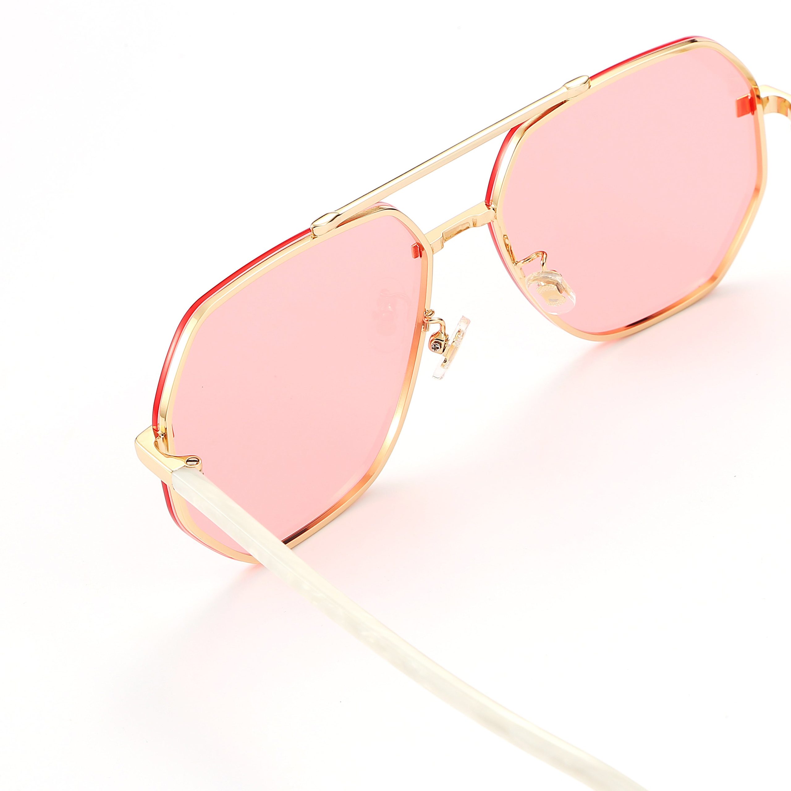 This pair is fitted with Oriental Pearl-inspired pink tinted lenses. and the sleek double brow bar for a retro look. Adjustable PVC nose pads for comfortable support. Perfect for everywhere from the beach to indoor party.