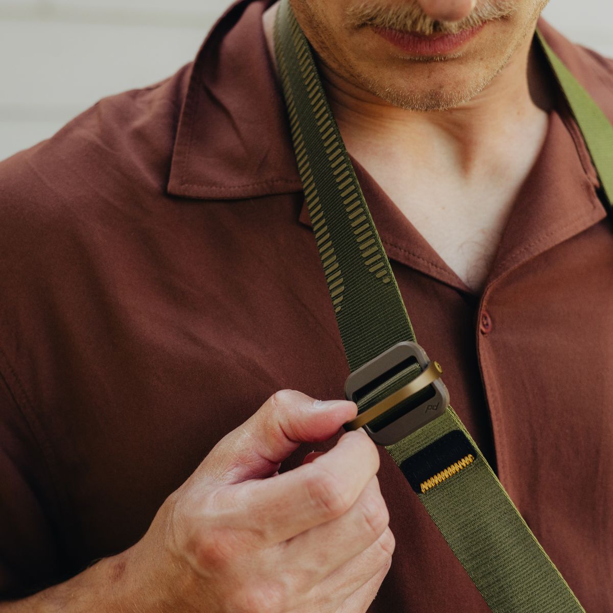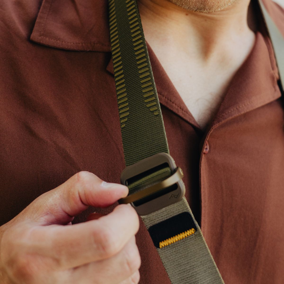 Our unique Anchor Link connection system lets you instantly reconfigure Slide as sling. neck. or shoulder strap.