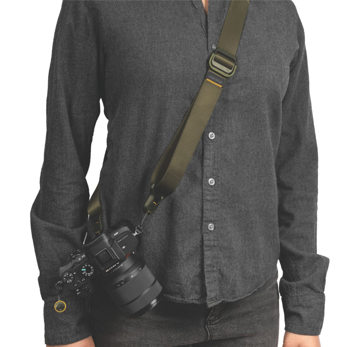 The most versatile pro camera strap in the world. Slide Lite packs the functionality of our flagship Slide strap into a smaller package. perfectly suited for mirrorless and light DSLR cameras. yet fully capable of carrying larger cameras as well. Wear Slide Lite as a sling. neck. or shoulder strap. Seatbelt-style nylon webbing has a smooth side that glides over clothing in sling mode and a grippy side that prevents slipping in shoulder mode. Dual quick-adjusters provide instant access and easy reconfiguration. Unique Anchor Link system connects quickly and dual points of connection keep your camera more stable than traditional sling straps. Each Anchor holds over 200lbs (90kg). strong enough to keep the heaviest of pro rigs safe. As of 2018. Slide Lite features an improved silicone grip. upgraded webbing. and lower profile strap/hardware transitions. Anchor connectors have been updated to be smaller. faster. and more secure.