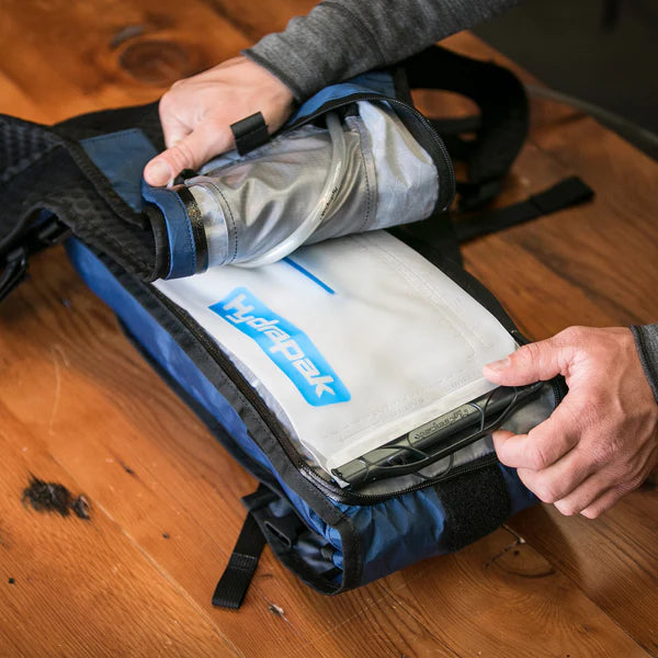 Water storage is provided by dual exterior water bottle holders and a separate hydration compartment that is compatible with any brand of reservoir up to 3L in capacity.